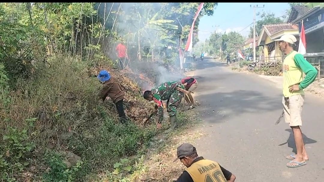 Nganjuk – Usai rangkaian kegiatan peringatan Hari Ulang Tahun ke-80 Republik Indonesia yang berlangsung meriah, Babinsa Desa Suru, Serda Wahyudi, bersama warga setempat melaksanakan kerja bakti membersihkan lingkungan pada Sabtu, 30 Agustus 2025.
