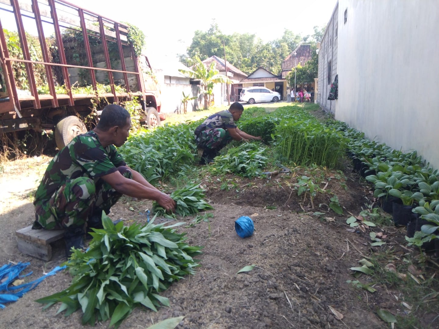 Anggota Koramil 0810/11 Prambon Panen Raya Kangkung dan Pakcoy, Berkah untuk Warga Masyarakat