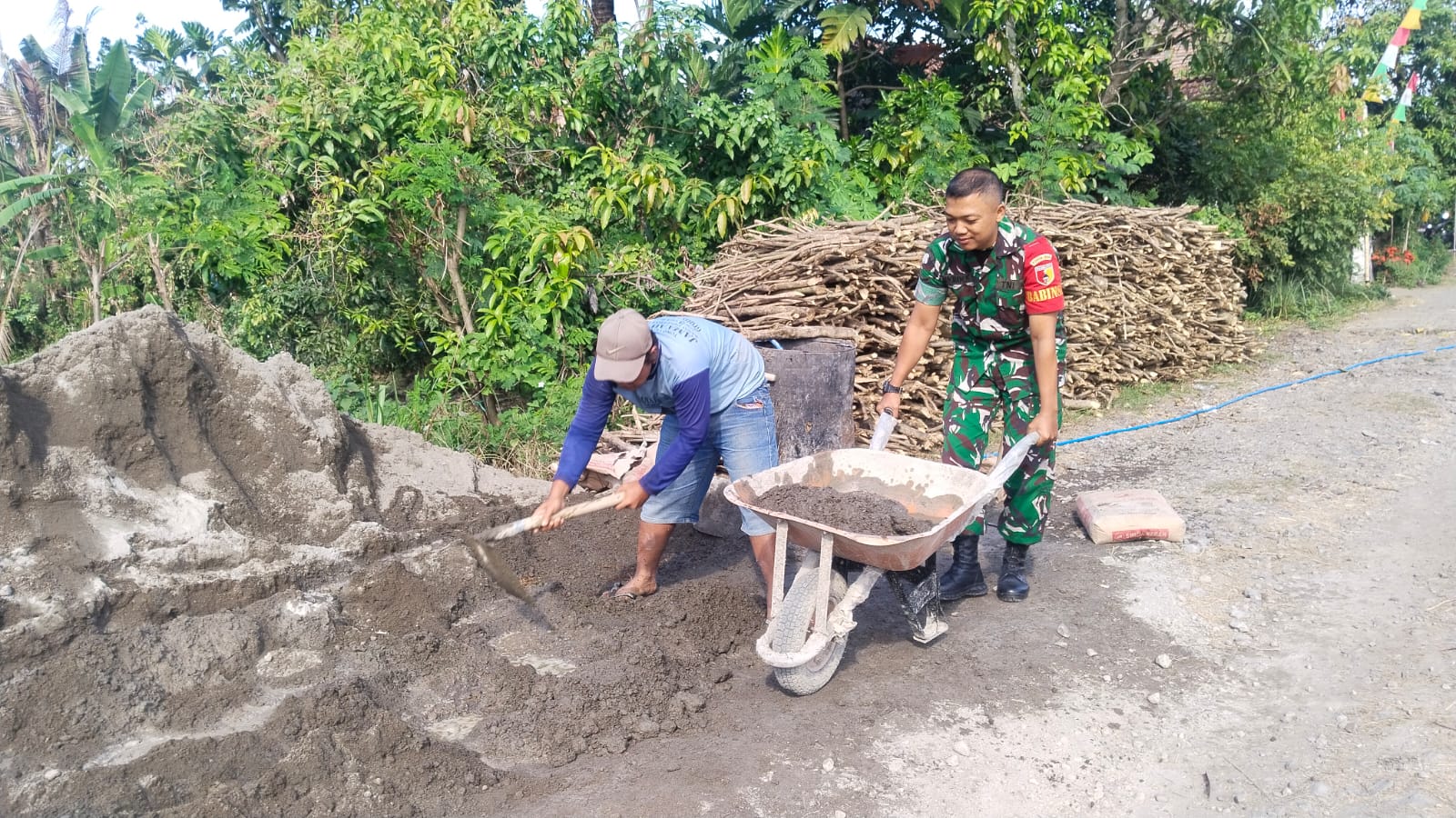 Nganjuk – Babinsa Koramil 0810/19 Jatikalen, Serda Lukman. K bersama dengan warga binaan Desa Jatikalen melaksanakan kegiatan karya bakti (karbak) pada hari ini.Kegiatan ini bertujuan untuk meningkatkan kesadaran gotong royong dan membangun infrastruktur desa.