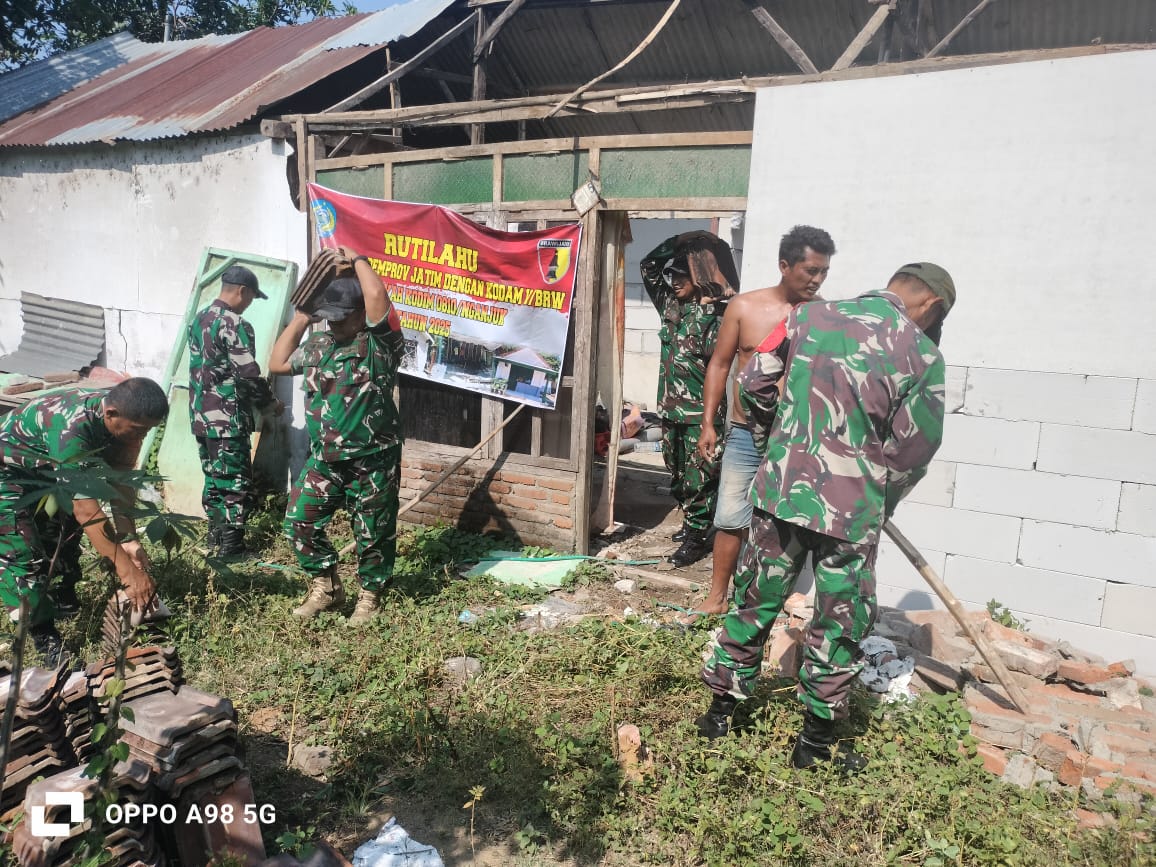 Nganjuk – Babinsa desa Lengkong Srrma Sulamianto koramil 0810/13 Lengkong membantu masyarakat kurang beruntung melaksanakan kerja bakti membuat rumah agar layak untuk di tempati bertempat di dusun Lempoh desa Lengkong kecamatan Lengkong kabupaten Nganjuk.