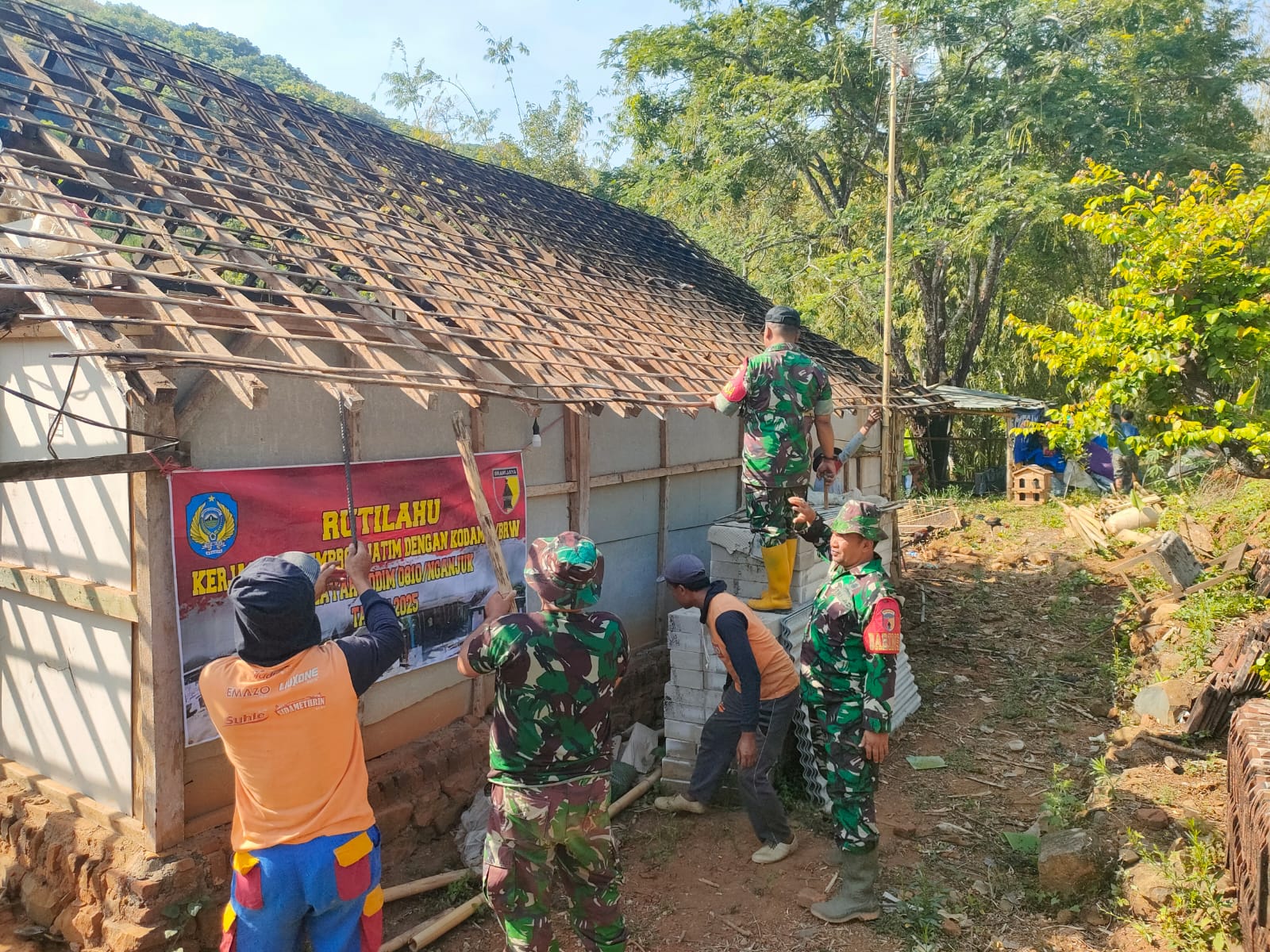 Babinsa Koramil 0810/03 loceret Bantu Pembongkaran Rumah Tidak Layak Huni (RTLH) Di Desa Bajulan Kecamatan Loceret kabupaten Nganjuk