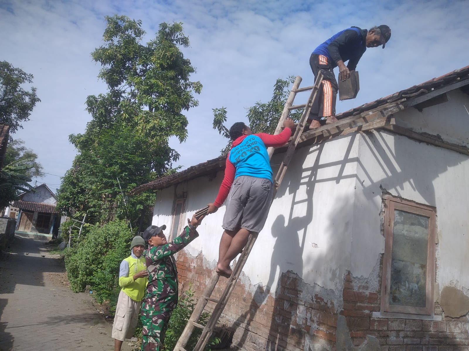 Babinsa Koramil 0810/12 Pace Bantu Renovasi Rumah Warga di Desa Sanan