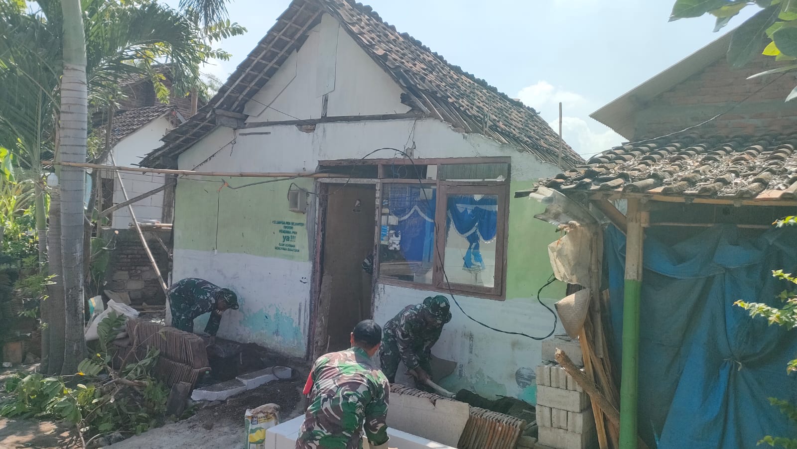 Babinsa Koramil 0810/12 Pace Bersama Warga Gotong Royong Rehab Rumah Tidak Layak Huni (Rutilahu)