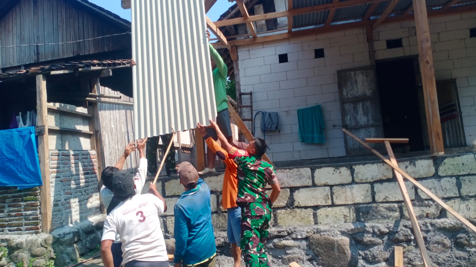 Dengan adanya kerja sama yang baik antara Babinsa dan masyarakat, pekerjaan pemasangan atap asbes tersebut berjalan lancar, cepat, dan penuh keakraban.