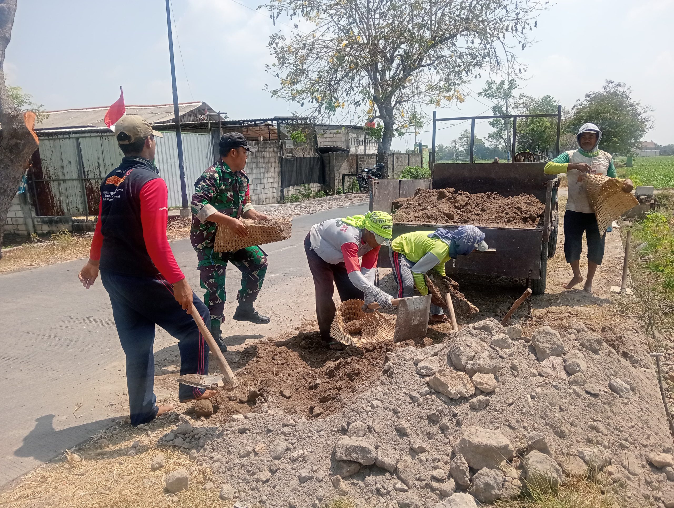 Dengan penuh semangat kebersamaan, Sertu Sunyoto bersama warga bahu-membahu menguruk jalan yang rusak menggunakan material yang telah disiapkan. Kehadiran Babinsa tidak hanya meringankan pekerjaan warga, tetapi juga memberikan motivasi agar mereka semakin giat bergotong royong.