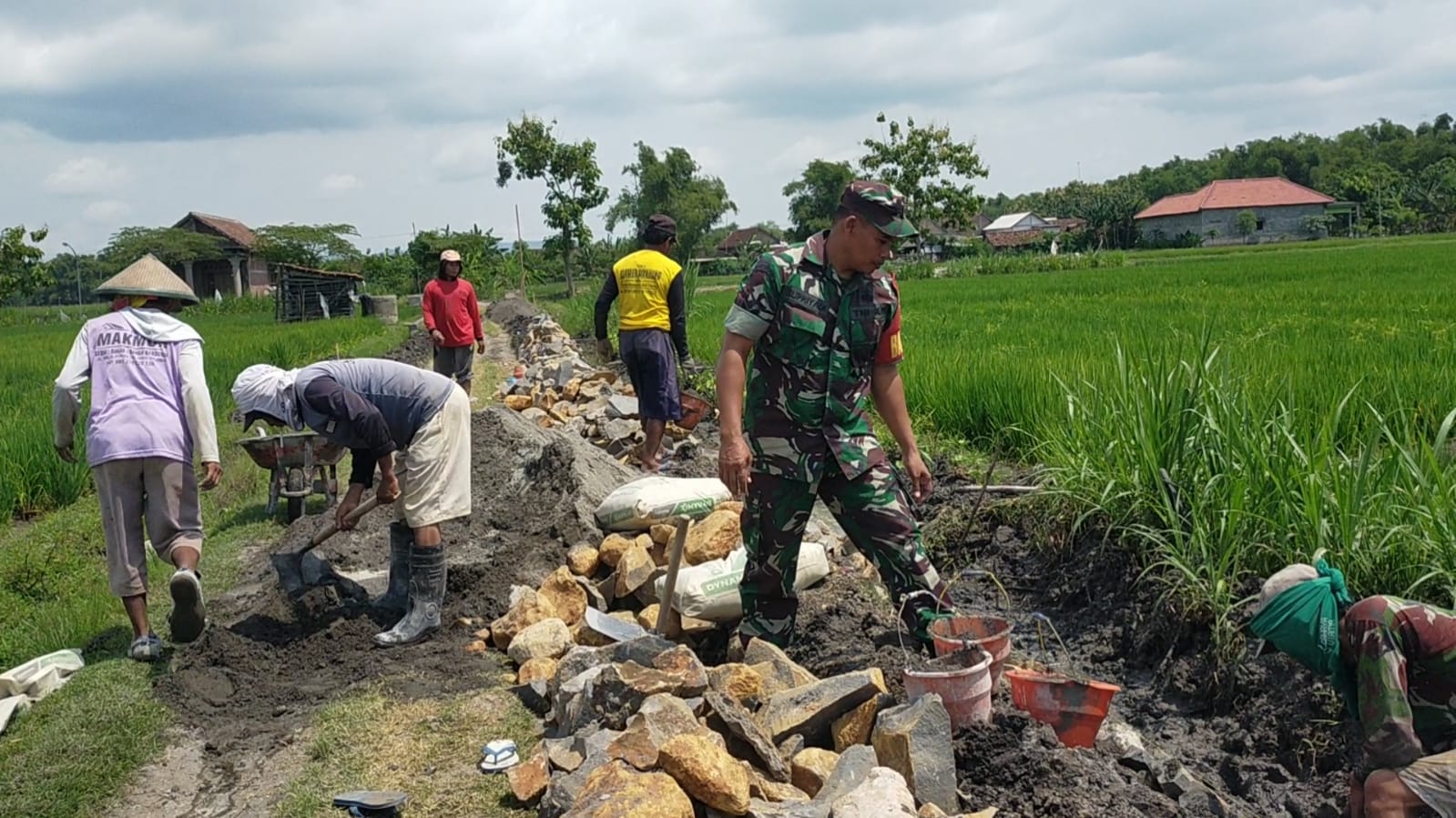 Dalam kegiatan tersebut, Serka Supriyadi terjun langsung membantu masyarakat mengangkut material dan menata batu. Hal ini menjadi bukti nyata kebersamaan antara TNI dengan rakyat di lapangan.