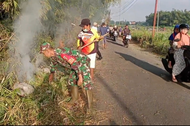 Nganjuk – Dalam upaya menciptakan lingkungan desa yang bersih dan jalan yang rapi, Babinsa Desa Gemenggeng Koramil 0810/02 Bagor, Serka Gunadi, bersama Bhabinkamtibmas, perangkat desa, dan warga masyarakat melaksanakan kegiatan kerja bakti pembersihan sampah dan semak belukar di kanan kiri jalan Dusun Tawang, Desa Gemenggeng, Kecamatan Bagor, Kabupaten Nganjuk, pada Senin (01/09/2025).