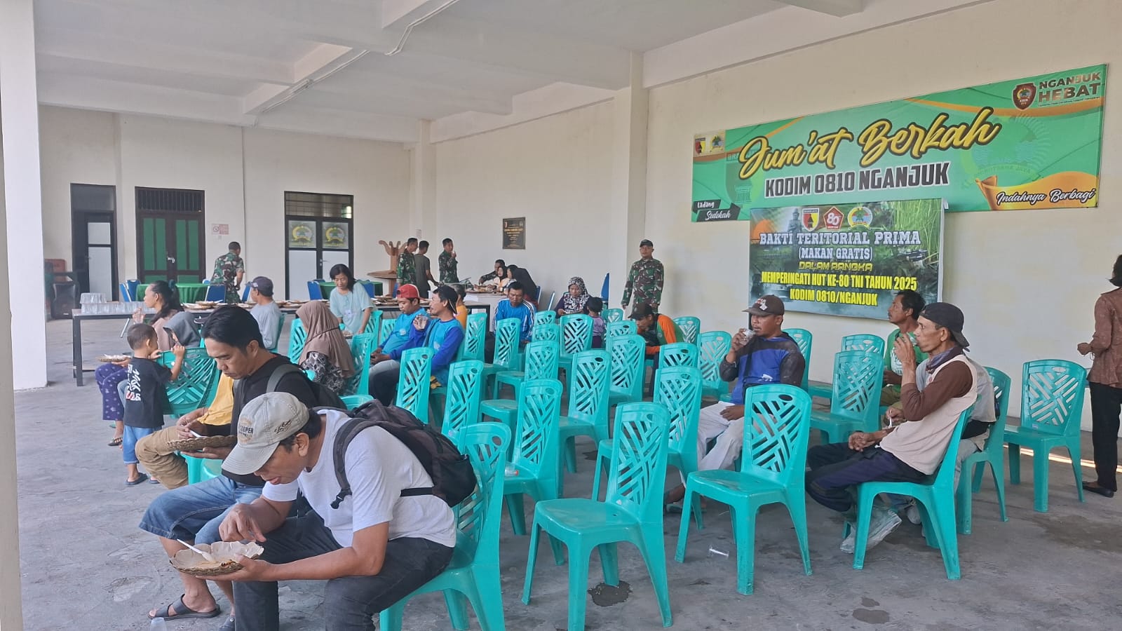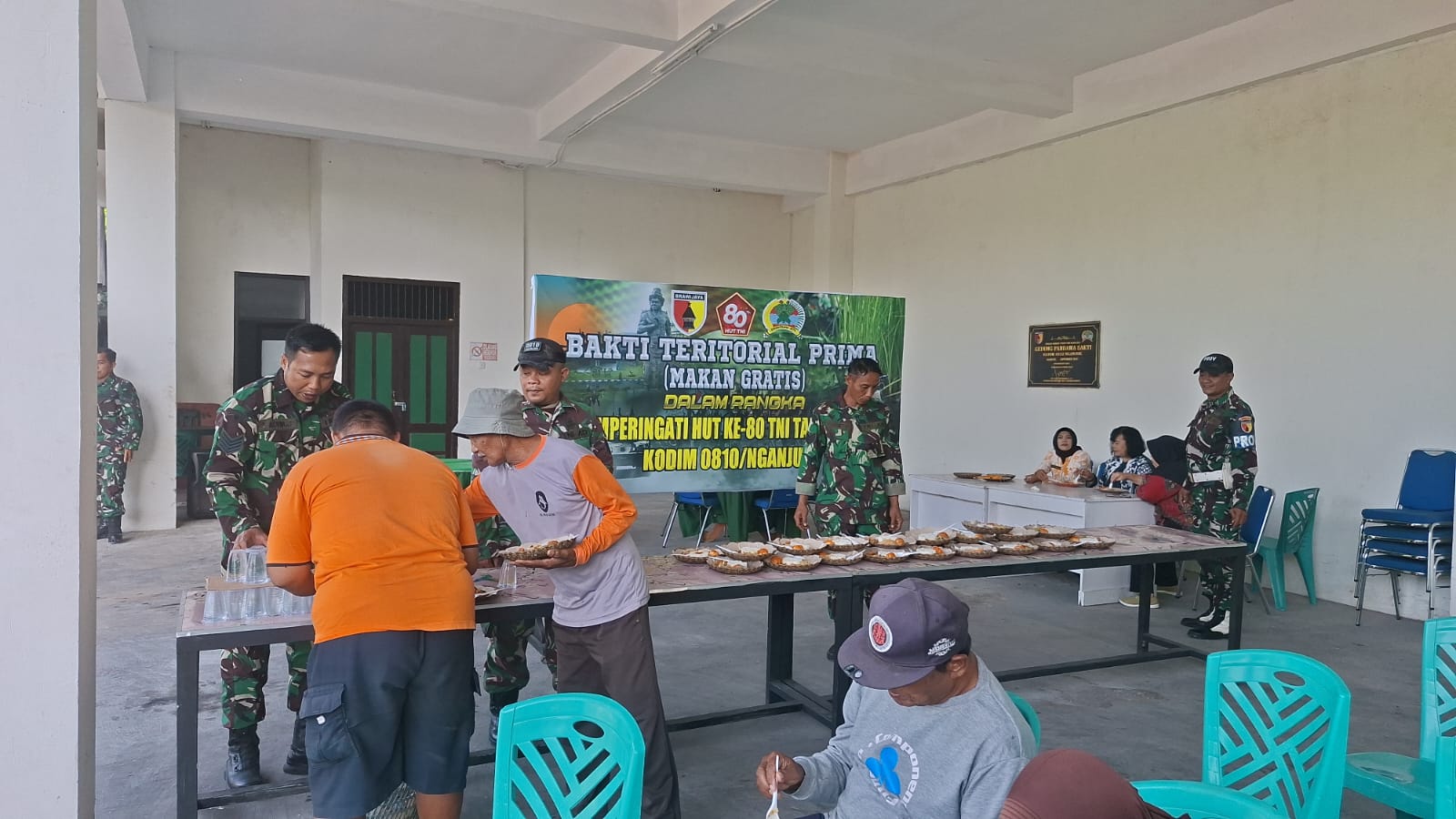 Kodim 0810/Nganjuk Gelar Bhakti Teritorial Prima: Makan Gratis Meriahkan HUT TNI ke-80