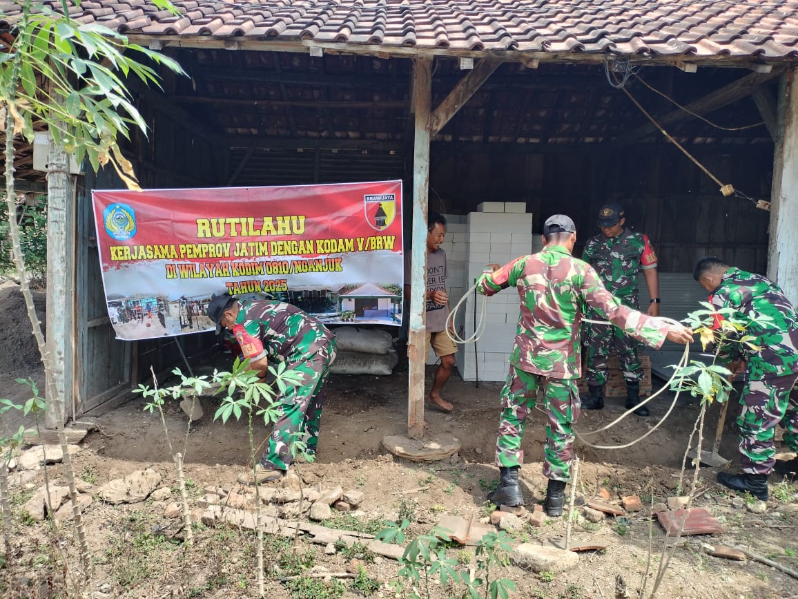 Nganjuk – Wujud nyata kepedulian TNI terhadap masyarakat terus ditunjukkan melalui aksi-aksi sosial di wilayah binaan. Kali ini, Babinsa Koramil 0810/13 Lengkong, Sertu Sunardi, melaksanakan kegiatan Bakti TNI dengan membantu pembangunan Rumah Tidak Layak Huni (Rutilahu) milik salah satu warga di RT 04 RW 04 Desa Sumbermiri, Kecamatan Lengkong, Kabupaten Nganjuk.