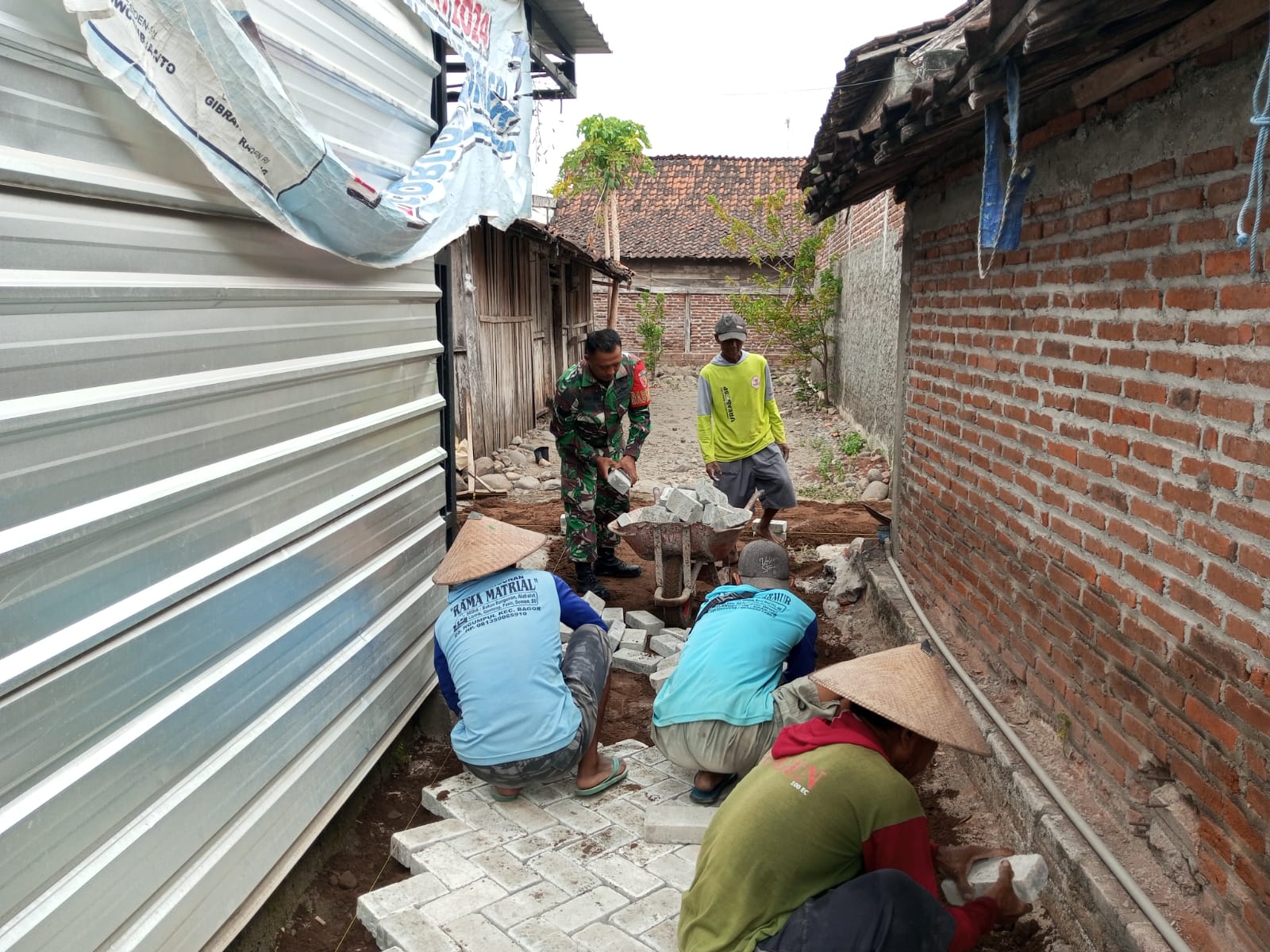 BABINSA BERSAMA WARGA LAKSANAKAN KARYA BAKTI PEMASANGAN PAVING DI DESA BALONGREJO
