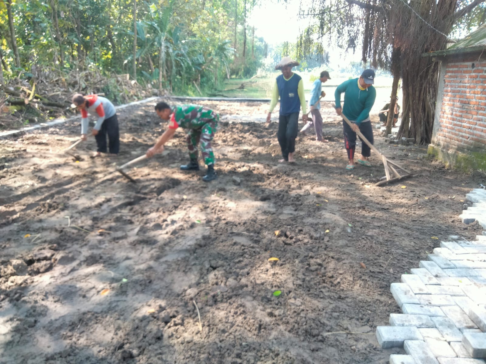 “Kami Babinsa ikut terjun langsung ke lapangan bersama warga untuk gotong royong memasang paving ini. Diharapkan pengerjaan bisa cepat selesai dan segera dimanfaatkan warga, apalagi sebentar lagi memasuki musim penghujan,” ujar Serda Mariyani di sela kegiatan.