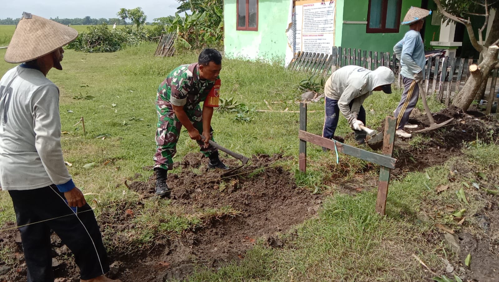 Dalam kegiatan itu, tampak Babinsa bersama warga saling bahu-membahu menggali tanah, untuk pondasi pagar dengan penuh semangat kebersamaan. Suasana keakraban dan kekompakan antara TNI dan masyarakat pun terlihat jelas selama berlangsungnya kerja bakti tersebut.