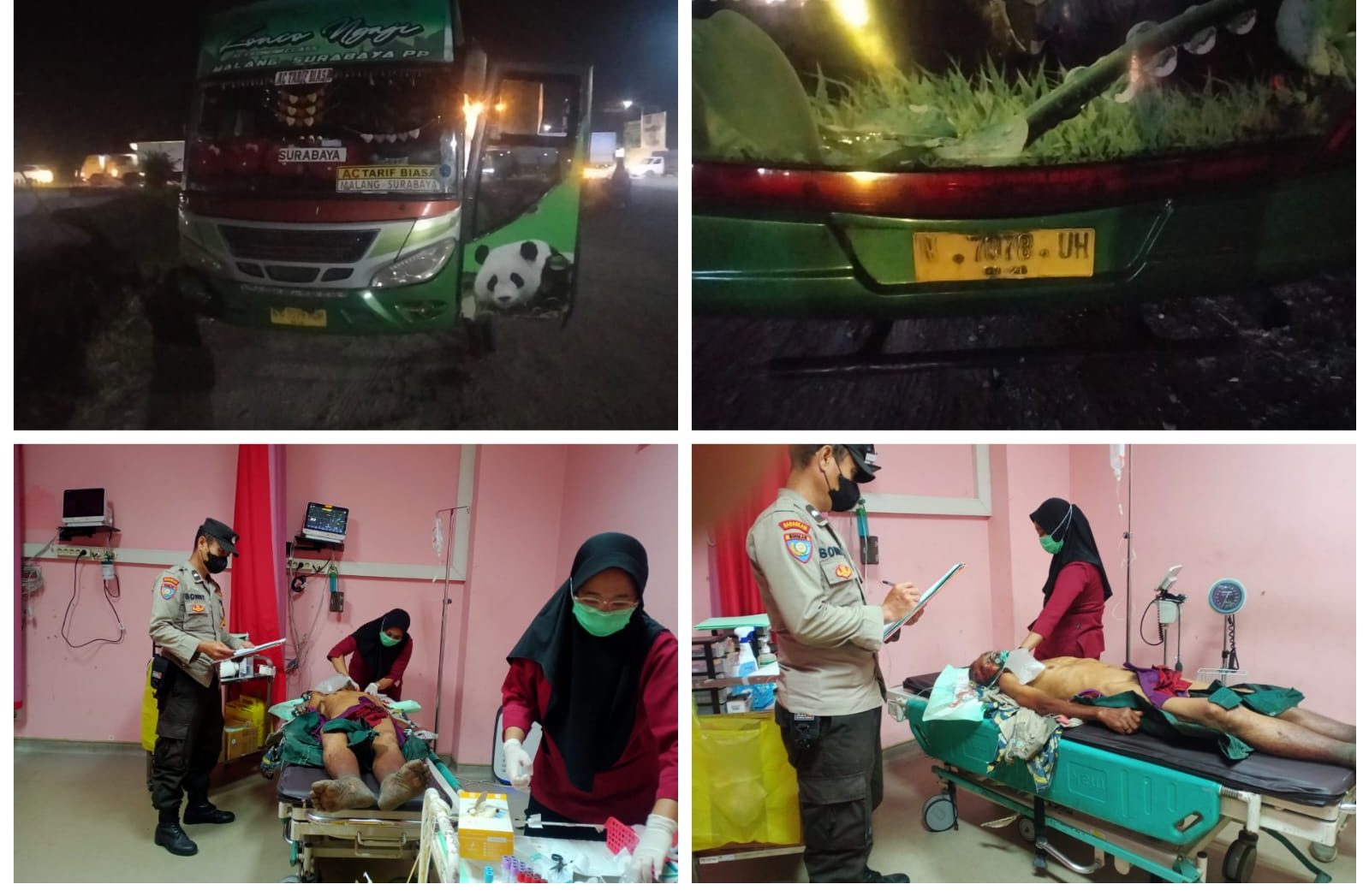 Pihak kepolisian telah melakukan olah Tempat Kejadian Perkara (TKP) dan mengamankan barang bukti serta pengemudi bus untuk proses penyelidikan lebih lanjut.