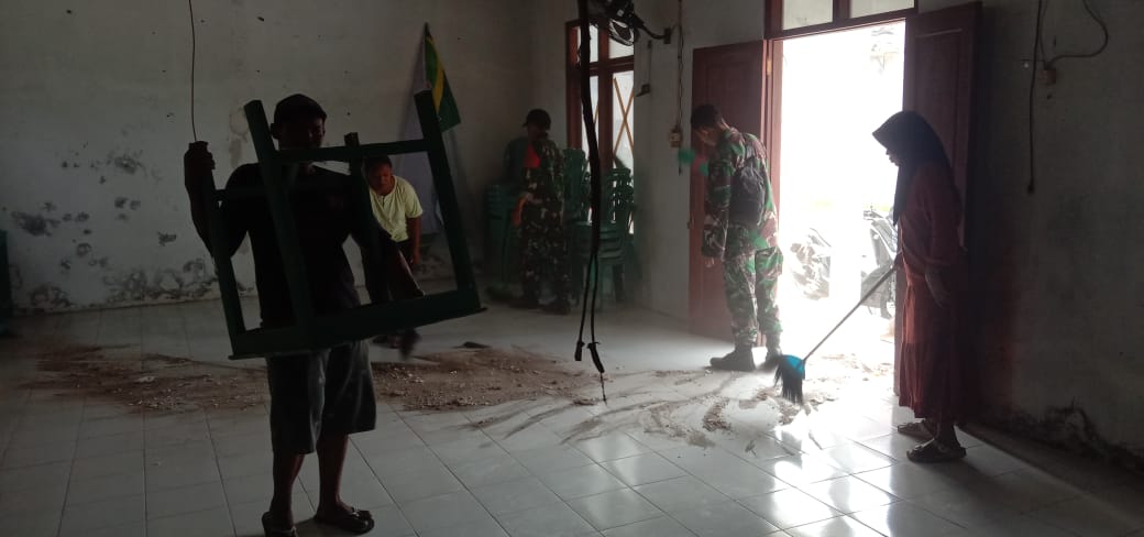 “Posyandu merupakan sarana pelayanan kesehatan dasar bagi masyarakat, khususnya untuk ibu hamil, balita dan anak-anak. Oleh karena itu kebersihan serta keamanan gedung harus menjadi perhatian bersama. Kita bersihkan dulu area yang rusak agar sementara dapat digunakan dengan aman sambil menunggu proses perbaikan lebih lanjut dari pihak desa,” ucap Babinsa.