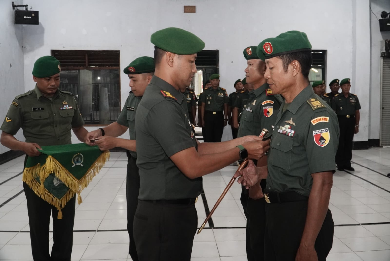 Nganjuk – Pada hari Rabu, 05 November 2025, bertempat di Aula Makodim 0810/Nganjuk Jl. Panglima Sudirman No. 11 Kelurahan Mangundikaran, Kecamatan/Kabupaten Nganjuk, telah dilaksanakan kegiatan Serah Terima Jabatan Perwira Kodim 0810/Nganjuk. Kegiatan tersebut dipimpin langsung oleh Dandim 0810/Nganjuk Letkol Arh M. Taufan Yudha Bhakti, S.I.P., S.T, dan diikuti sekitar 75 personel.