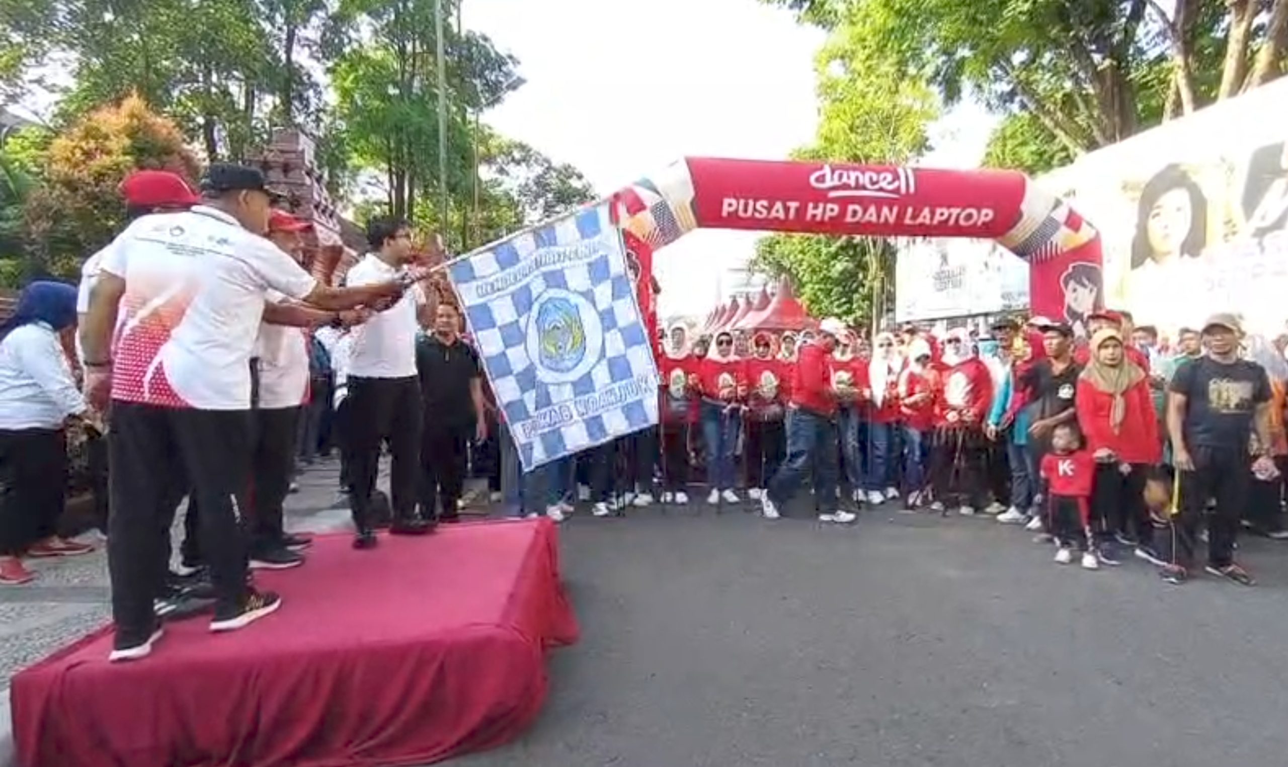 “Jadi, ada empat kegiatan semuanya kita selenggarakan hari ini. Karena kalau diselenggarakan setiap minggu satu-satu nanti jenengan bosan, *kok* jalan sehat terus. Jadi kita jadikan satu,” lanjutnya.