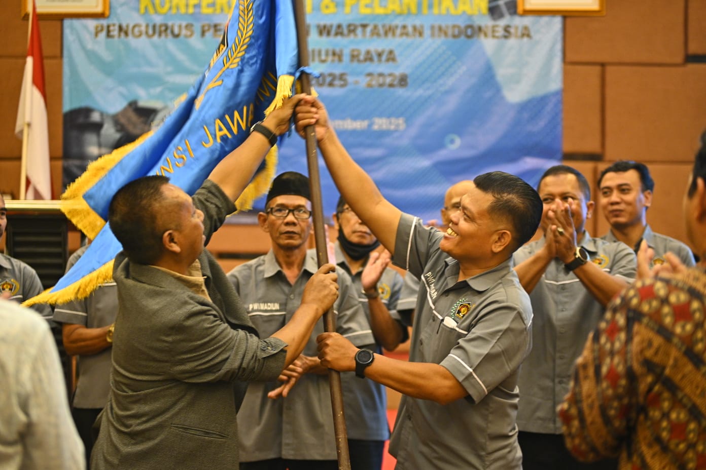 Wartawan Jatim Pos Biro Madiun, Jumali, terpilih secara aklamasi sebagai ketua dalam Konferensi III dan Pelantikan yang digelar di Hotel Aston Madiun, Kamis (4/12/2025).