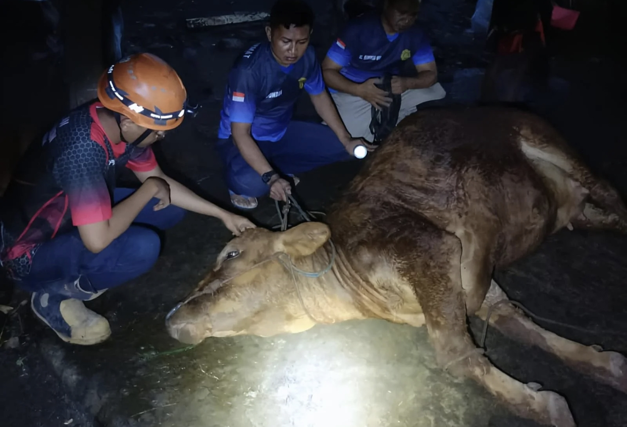 “Setelah melakukan asesmen di lokasi, kami menemukan bahwa sumur cukup dalam dan alat derek yang kami miliki tidak mampu mengangkat hewan besar seperti sapi,” ujar Imam Ashari, Kamis (15/1/2026).
