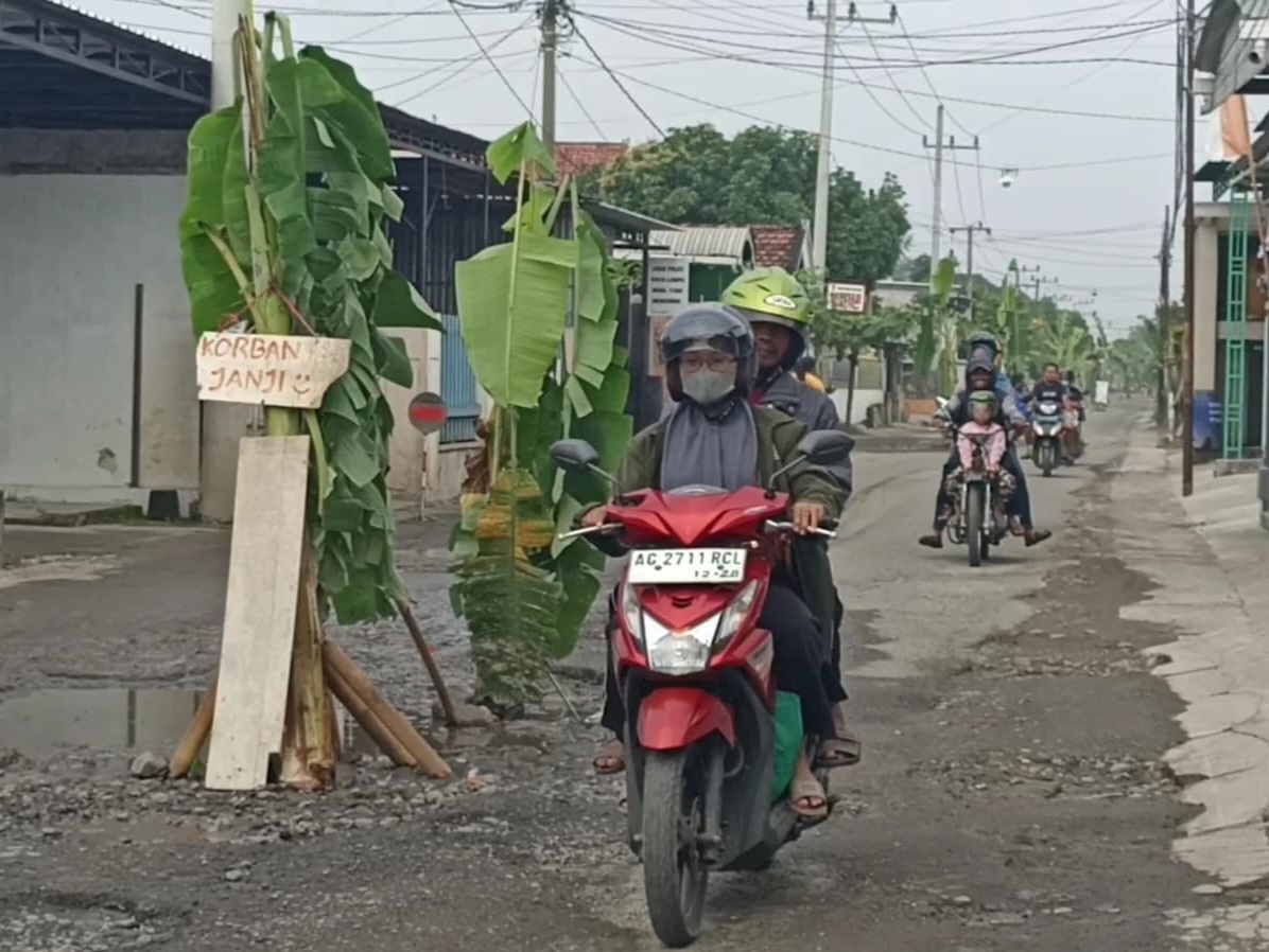 Ukuran pohon pisang yang ditanam bervariasi menyesuaikan besar kecilnya lubang. Warga juga memasang tulisan bernada sindiran seperti “Korban Janji” dan “Maaf perjalanan anda terganggu, sedang ada perbaikan umpamane”.