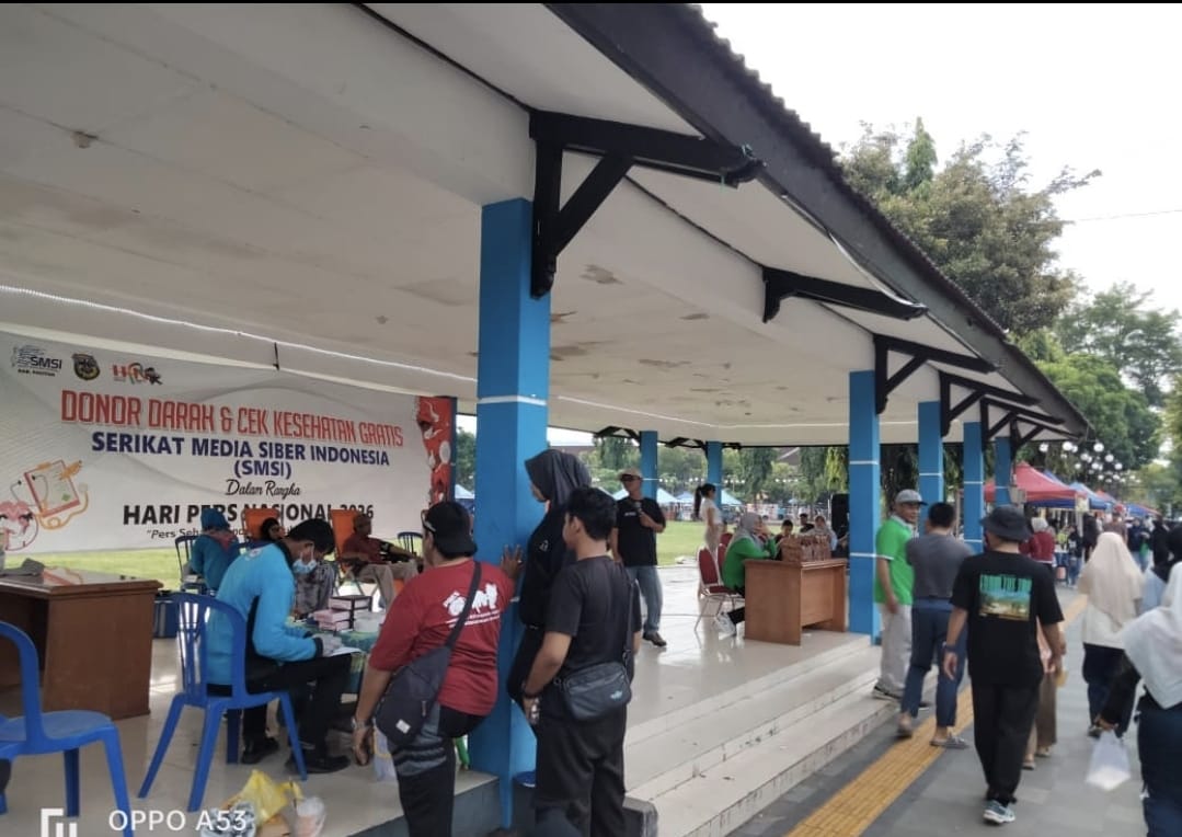 PACITAN, SRTV.CO.ID -Serikat Media Siber Indonesia (SMSI) Kabupaten Pacitan memilih merayakan Hari Pers Nasional (HPN) 2026 dengan cara yang berbeda. Alih-alih seremoni, organisasi perusahaan pers itu menggelar kegiatan donor darah dan cek kesehatan gratis di Tribun Alun-alun Pacitan, Minggu dini hari, 8 Februari 2026.