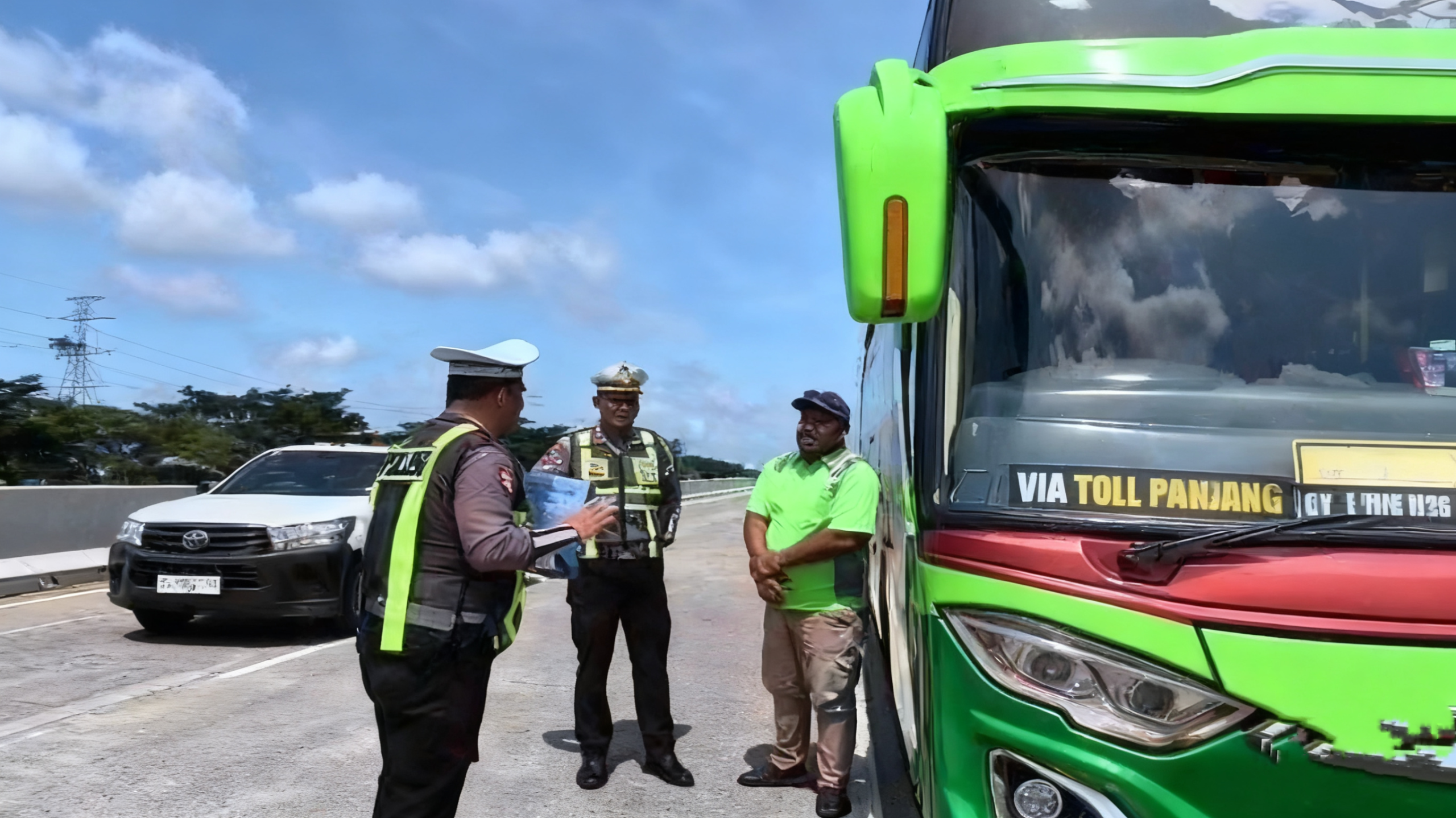 Selain sosialisasi agar para sopir terutama truk dan bus untuk tidak menggunakan lajur kanan secara terus menerus, petugas juga mengambil tindakan menertibkan para sopir yang bandel parkir di bahu jalan. Jumat (20/2/2026)