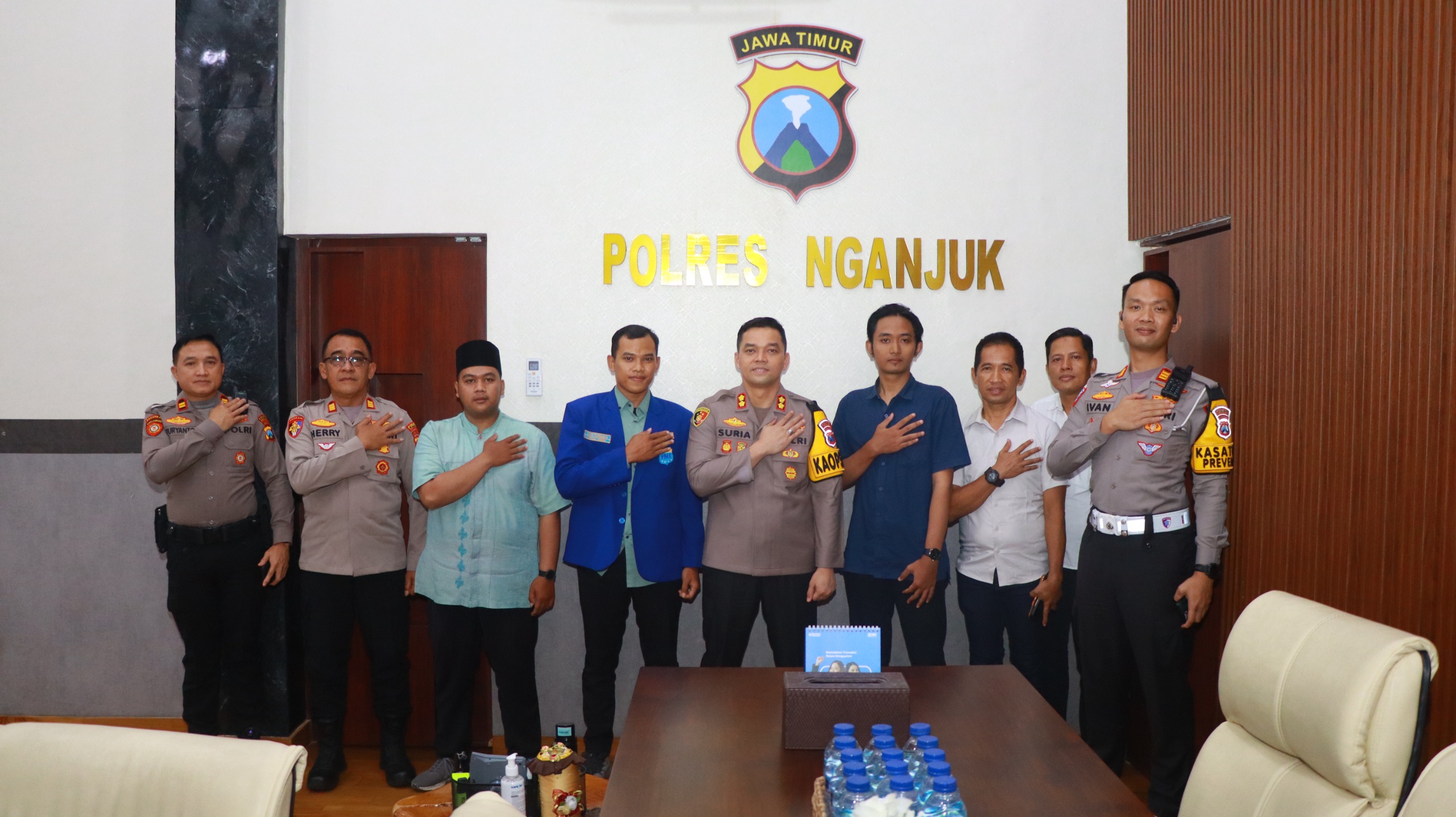 “Polres Nganjuk selalu membuka ruang dialog yang luas bagi mahasiswa. Silakan sampaikan segala bentuk aspirasi secara terbuka dan transparan, namun kami berharap penyampaiannya dilakukan dengan cara yang santun, mengedepankan prinsip komunikasi yang baik sehingga tidak menimbulkan gesekan atau konflik di tengah masyarakat,” tegas AKBP Suria Miftah Irawan.