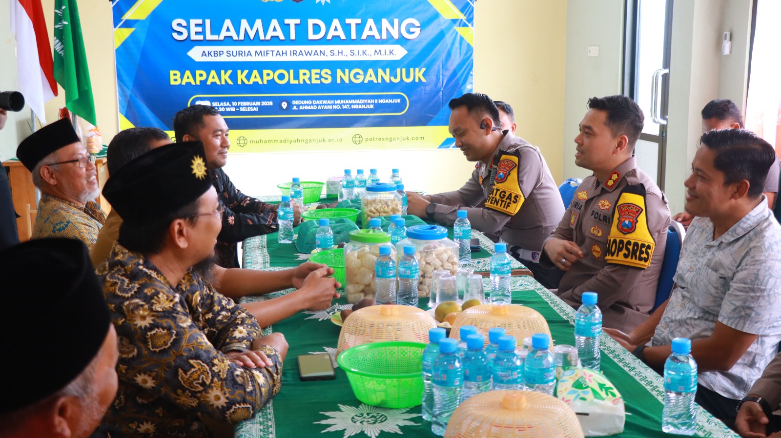 “Kami sangat mengapresiasi peran Muhammadiyah sebagai organisasi keagamaan yang konsisten dalam menjaga kesejukan dan persatuan. Sinergi antara Polri dan tokoh agama menjadi kunci penting dalam menciptakan situasi kamtibmas yang aman dan kondusif di Kabupaten Nganjuk,” ujar AKBP Suria Miftah Irawan saat membuka audiensi.