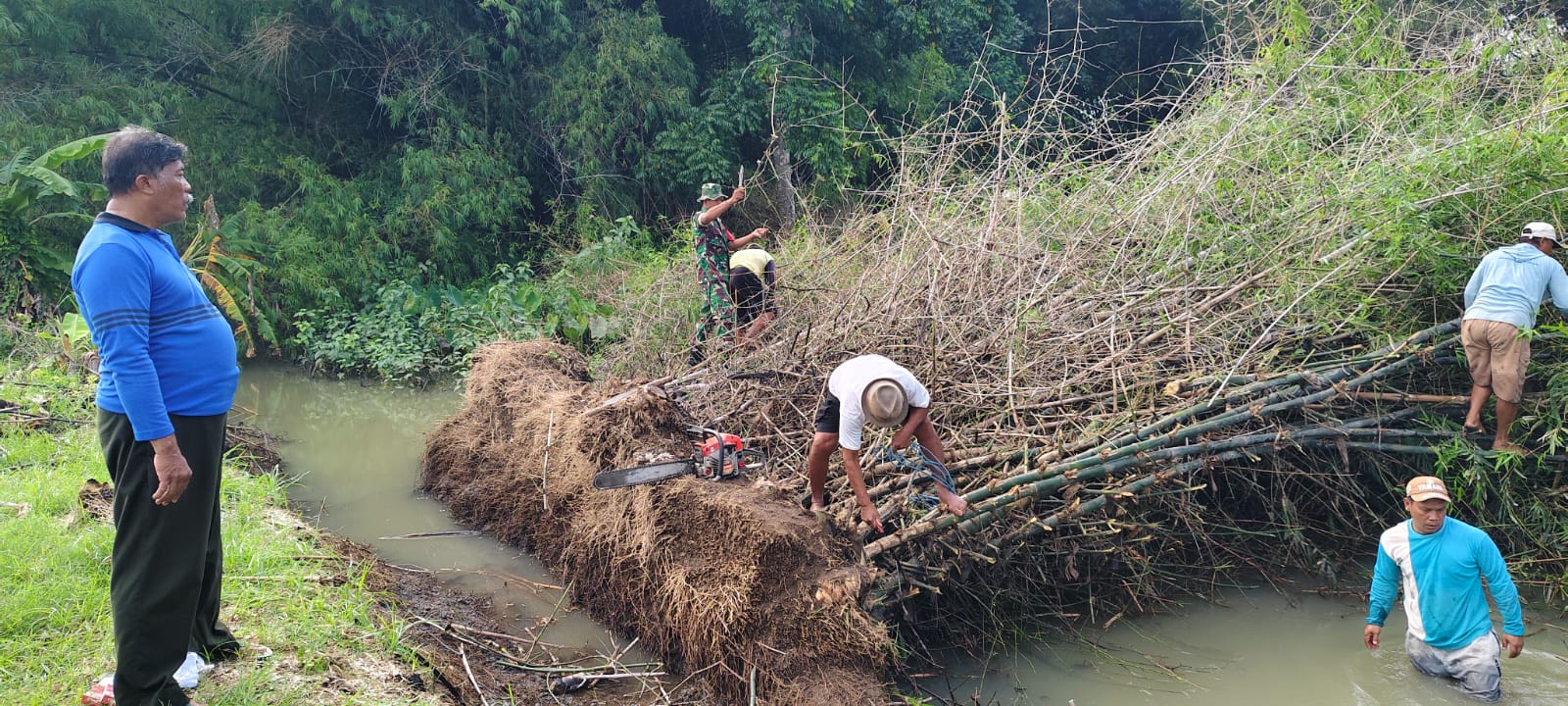 Kegiatan gotong royong tersebut dilakukan dengan membersihkan parit dan aliran air yang tertutup lumpur, ranting pohon serta tumpukan bambu yang menghambat jalannya aliran air. Dalam kegiatan itu, Babinsa bersama warga turun langsung ke lokasi untuk memotong, mengangkat dan memindahkan bambu serta sampah yang menutup saluran air sehingga aliran air dapat kembali lancar.