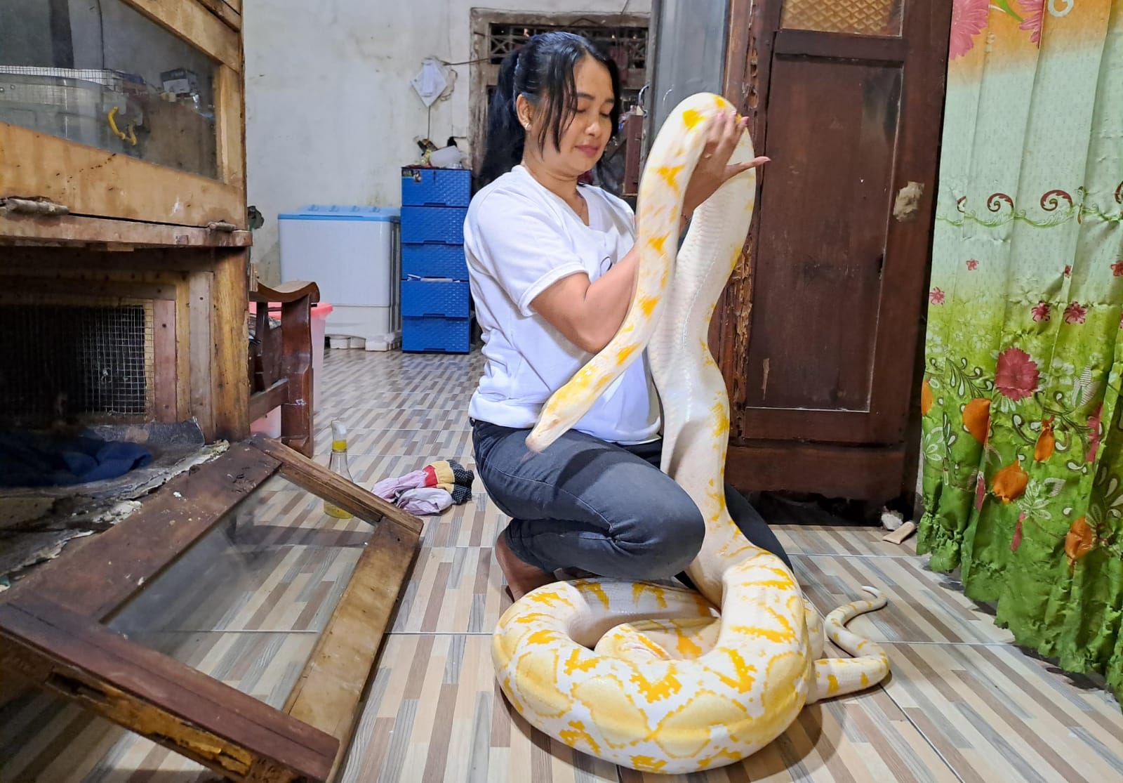 Koleksinya pun beragam, mulai dari piton jenis golden child berwarna hitam, sanca kembang, tiger, ivory, hingga piton albino. Seluruh reptil tersebut ditempatkan dalam kandang khusus di dalam rumah dan dirawat sendiri olehnya dengan sangat teliti agar tidak mengganggu aktivitas keluarga.