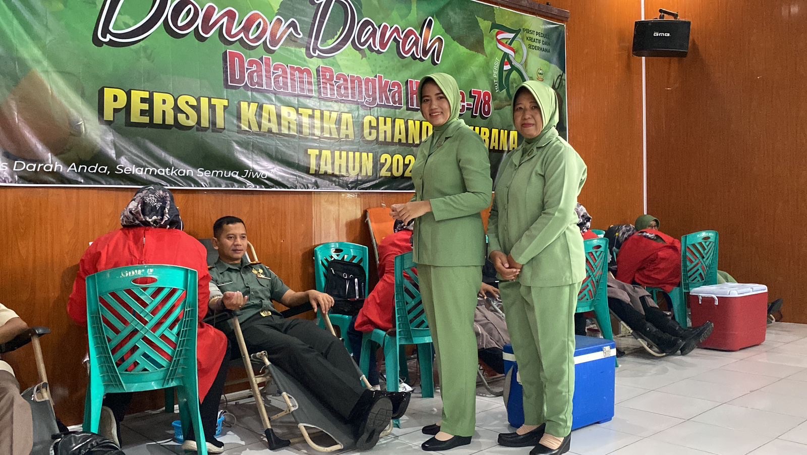 Nganjuk - Menyambut dan Memeriahkan HUT Persatuan Istri Tentara Kartika Chandra Kirana (Persit KCK) ke 78 tahun 2024, Kodim 0810/Nganjuk mengadakan bhakti sosial donor darah di Makodim 0810/Nganjuk Jl. Panglima Sudirman No. 11 Kabupaten Nganjuk, Selasa (27/02/2024).