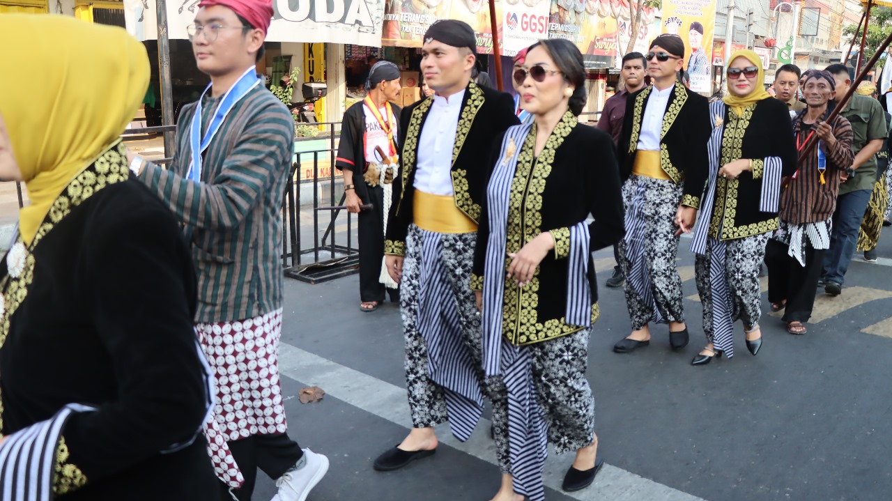 Nganjuk - srtv.co.id - Kapolres Nganjuk AKBP Muhammad S.H., S.I.K., M.Si., dan Ibu Anggun Muhammad beserta unsur Forkompimda, dengan memakai pakaian adat Jawa khas kabupaten Nganjuk terlihat begitu antusias merayakan acara Boyong Noto Projo ke-144 yang sekaligus merupakan bagian dari tradisi tahunan Kabupaten nganjuk,Kamis (06/06/2024).