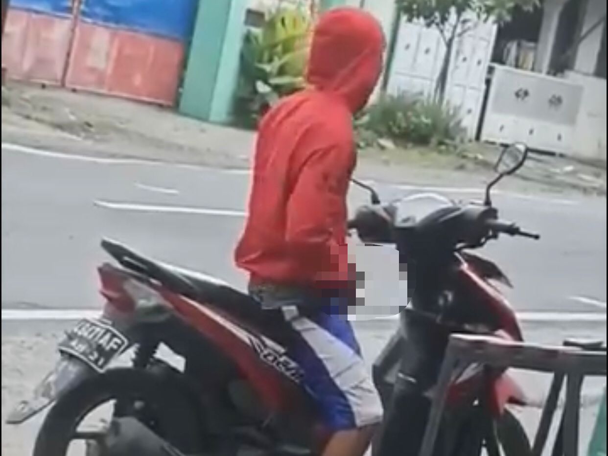 Dalam video yang beredar, pelaku terlihat mengendarai sepeda motor matic dan mengenakan jaket jumper merah. Aksi memalukan itu terjadi ketika suasana toko dan jalanan sedang sepi.
