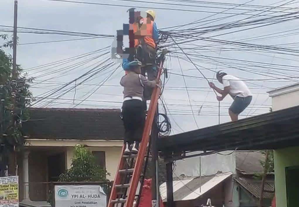 Tanpa pengaman teknisi itu membenahi kabel wifi. Karena saat kejadian korban mengenakan hodie berwarna hitam, celana tiga perempat, dan sandal jepit saat kejadian.