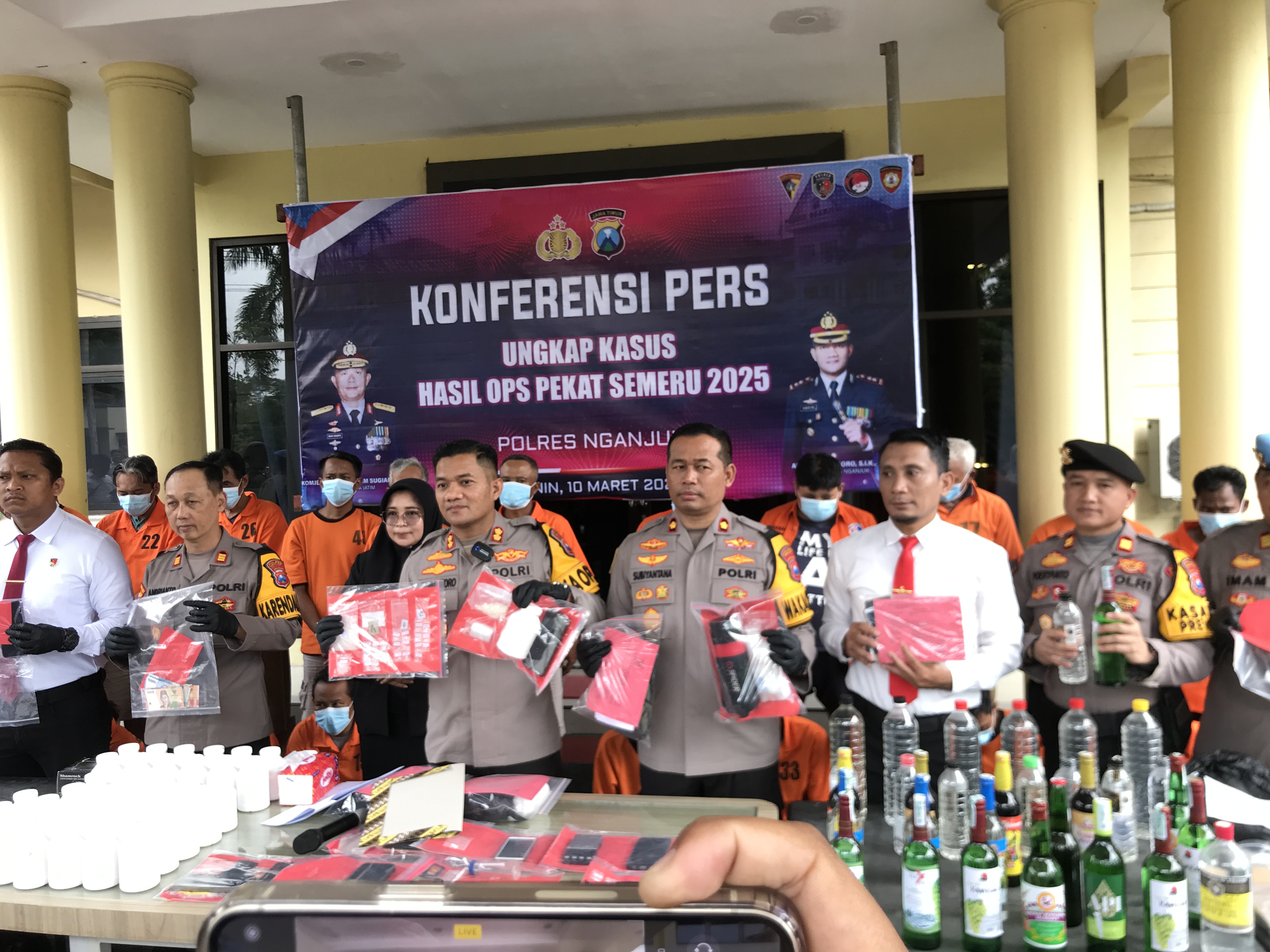 "Kami berikan apresiasi terhadap para polsek jajaran yang banyak mengungkap kasus penyakit masyarakat atau pekat dalam operasi," ungkap Kapolres Nganjuk AKBP Siswantoro saat konferensi pers, Senin (10/3/2025).
