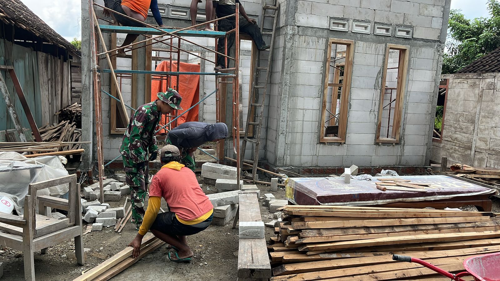 Nganjuk - Bertempat di Desa Lengkong Lor Kecamatan Ngluyu dilaksanakan kegiatan TMMD ke-124 tahun 2025 diantaranya program bantuan fisik berupa bedah rumah tidak layak huni (Rutilahu) Senin (26/05/2025).