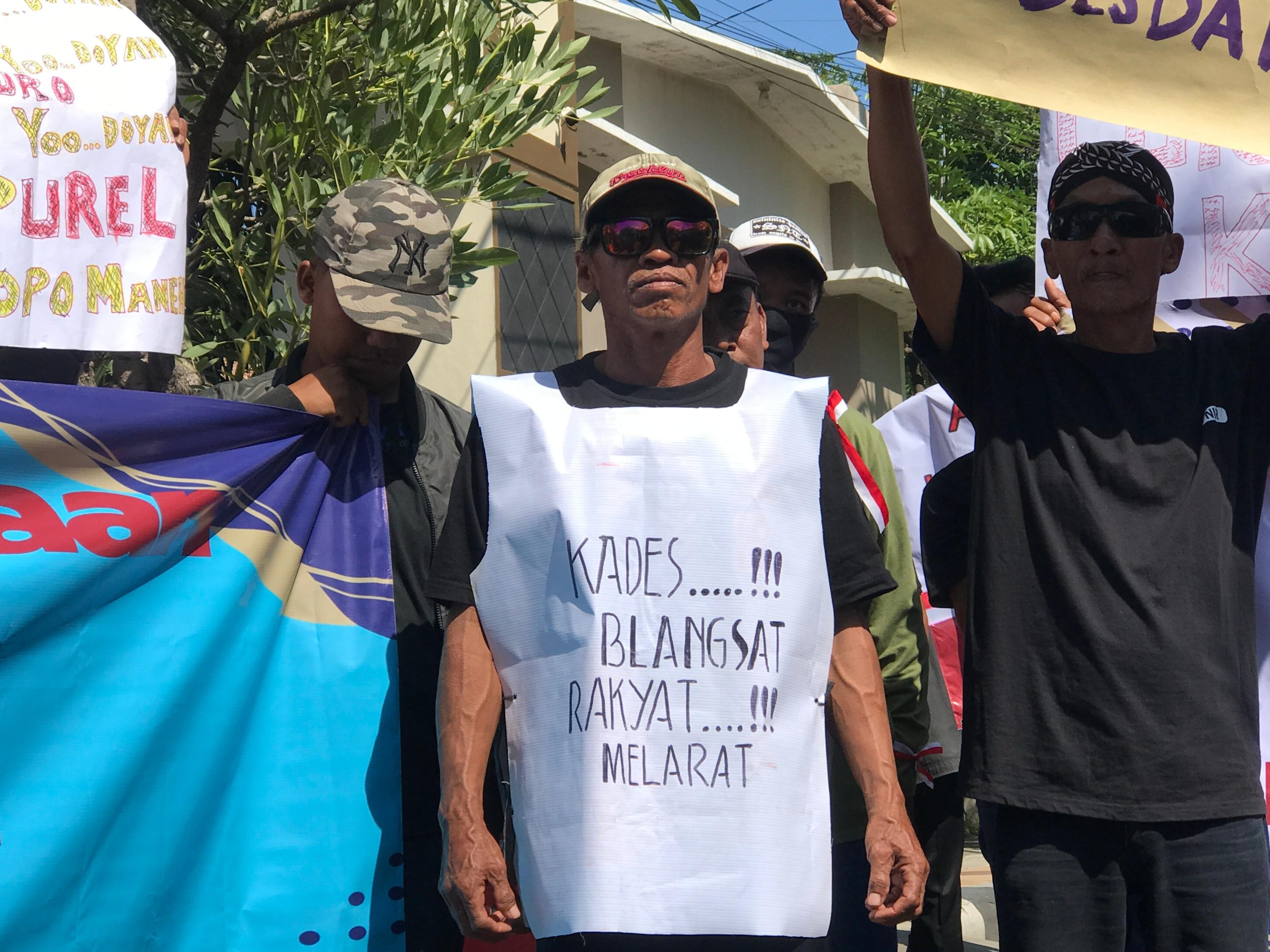 Dengan teriakan lantang, mereka menuntut pencopotan dan pemenjaraan Kepala Desa Dadapan yang dituding menyelewengkan dana desa hingga Rp 400 juta.
