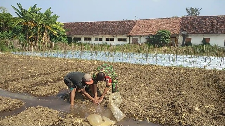 Dalam kegiatan tersebut, Sertu Agus H bersama Kelompok Tani yang diketuai oleh Bapak Joko turun langsung ke lahan untuk memastikan tanaman jagung mendapatkan pengairan yang cukup, terutama di musim kemarau yang dapat menghambat pertumbuhan tanaman.
