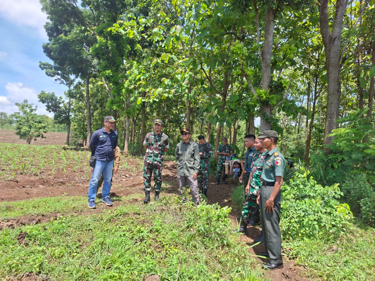 Nganjuk — Kodim 0810/Nganjuk bersama Tim Denzibang 3/V/Brawijaya melaksanakan peninjauan langsung lokasi rencana pembangunan Yon TP (Batalyon Teritorial Pembangunan) di lahan Perhutani Petak 152 dan 153, Desa Salamrojo, Kecamatan Berbek, Kabupaten Nganjuk, pada Kamis (20/11/2025).