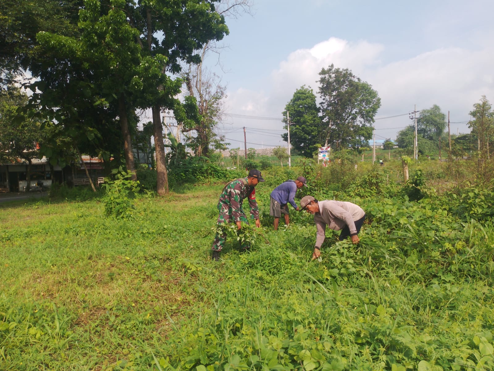 Babinsa Desa Sambikerep Bersama Warga Binaannya Laksanakan Kerja Bakti di Lokasi Rencana Pembangunan Koperasi Desa Kelurahan Merah Putih (KDKMP)