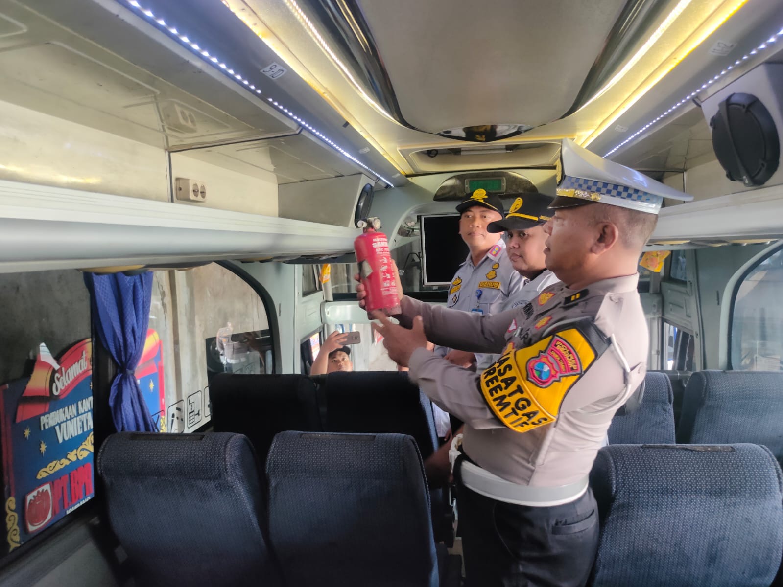 Aspek yang diperiksa meliputi fungsi vital seperti saklar, kelistrikan, lampu utama, wiper, tekanan ban, jumlah kursi, hingga perangkat keselamatan darurat seperti Alat Pemadam Api Ringan (APAR) dan emergency safety hammer.