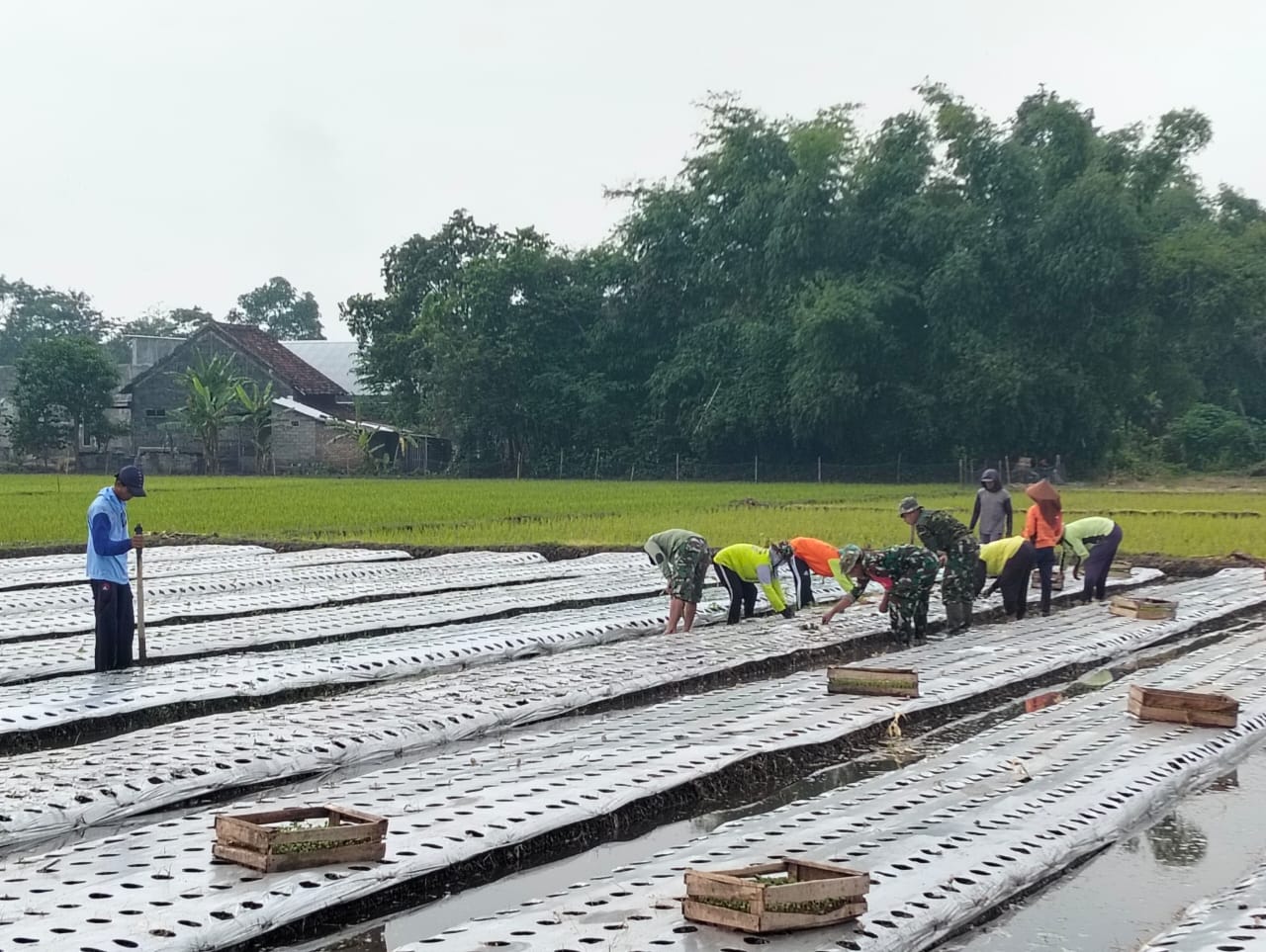 Nganjuk - Prambon – Dalam rangka mendukung program ketahanan pangan di wilayah, Personel Koramil 0810/11 Prambon melaksanakan kegiatan penanaman sayur pakcoy di lahan demplot yang berada di area binaan Koramil, Rabu (03/12/2025).