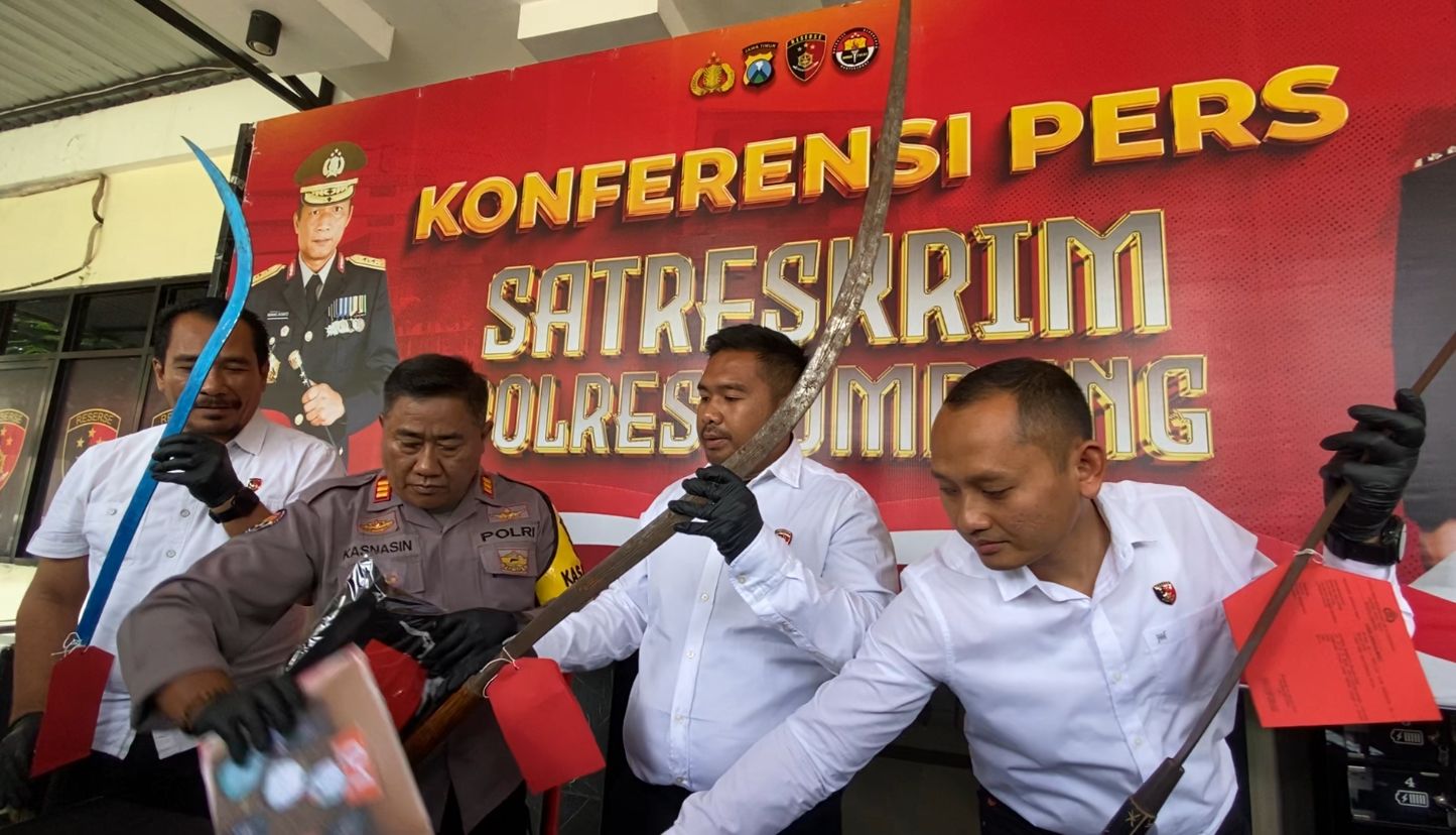 "Di tempat kejadian perkara, kami mendapati sejumlah pemuda yang berboncengan sepeda motor, sebagian di antaranya kedapatan membawa senjata tajam jenis celurit serta bahan peledak rakitan jenis bondet. Ini sangat berbahaya dan mengancam keselamatan masyarakat." Jelasnya saat konferensi pers Senin (2/2/2026) Tidak hanya mengamankan pelaku, polisi juga menyita barang bukti berupa tiga bilah celurit panjang, sembilan buah bom bondet siap pakai, satu unit sepeda motor Honda Vario warna putih, serta sejumlah barang bukti lain yang berkaitan dengan peristiwa tersebut.