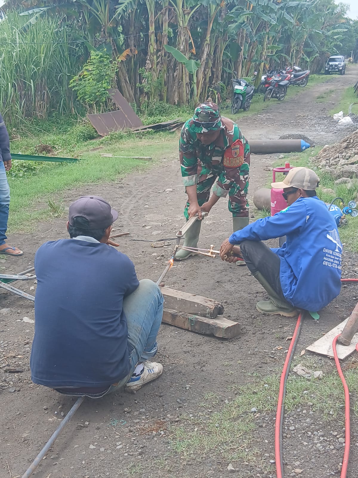 Melihat kondisi tersebut, Serka Heru tidak tinggal diam. Ia bersama warga setempat bergotong royong melaksanakan perbaikan jembatan, mulai dari pengangkutan material, penyiapan rangka, hingga proses pemasangan, dengan tujuan agar akses masyarakat dapat segera pulih dan kembali digunakan secara aman.