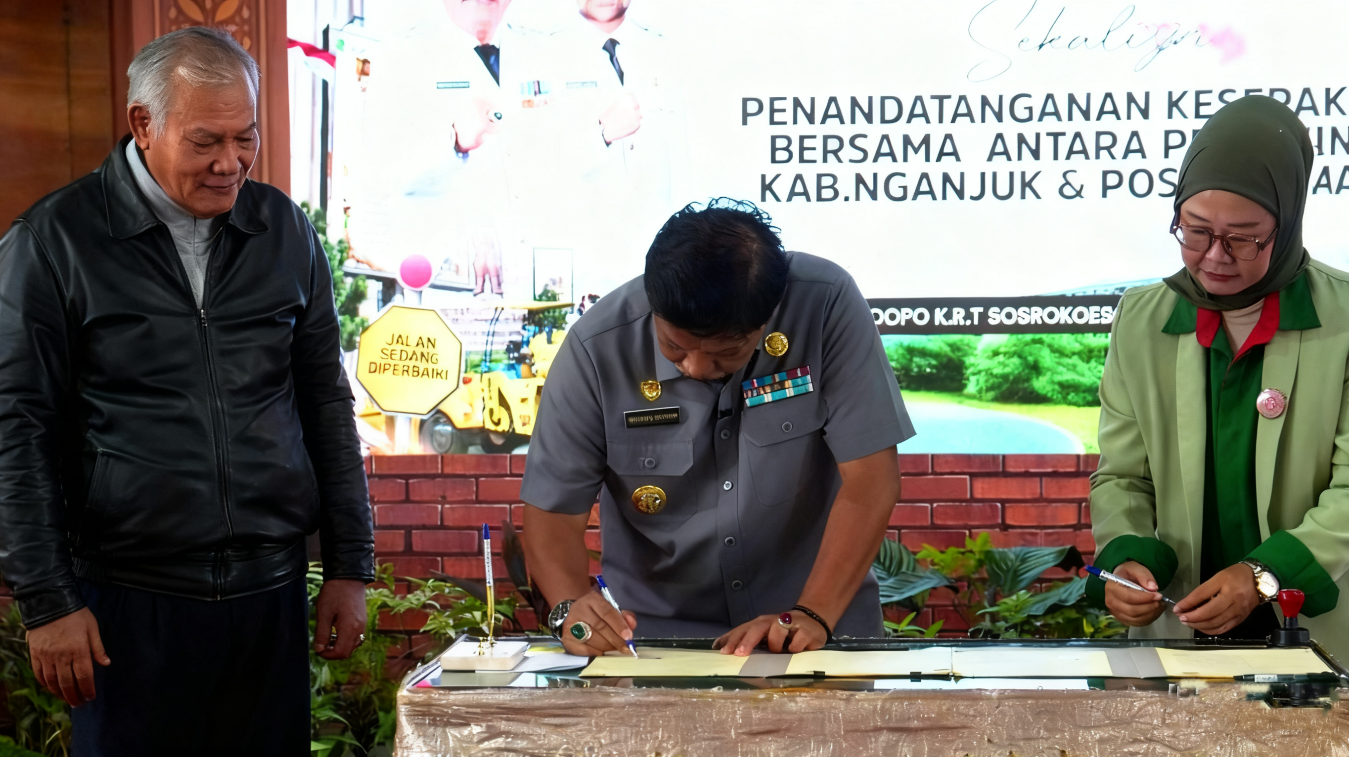 NGANJUK, SRTV.CO.ID – Pemerintah Kabupaten Nganjuk menegaskan komitmennya dalam menghadirkan perlindungan hukum hingga tingkat desa dan kelurahan melalui kegiatan Penguatan Pos Bantuan Hukum (Posbakum) sekaligus Penandatanganan Kesepakatan Bersama dengan Pos Bantuan Hukum Advokat Indonesia ( Posbakumadin) Nganjuk. Acara berlangsung di Pendopo K.R.T. Sosrokoesoemo pada Rabu (11/2/2026). “Kerja sama ini merupakan bentuk konkret kehadiran negara dalam menjamin hak-hak hukum masyarakat, khususnya kelompok rentan dan masyarakat kurang mampu di desa dan kelurahan,” ujar Bupati Nganjuk Marhaen Djumadi, Kamis (12/2/2026) Penandatanganan Memorandum of Understanding (MoU) ini menjadi tonggak penting dalam memperluas jangkauan layanan hukum bagi seluruh lapisan masyarakat Nganjuk. “Penandatanganan MoU ini adalah bentuk nyata bahwa pemerintah daerah hadir di tengah masyarakat, memberikan perlindungan hukum sampai ke desa dan kelurahan,” tegas Bupati Marhaen. Menurutnya, Posbakum memiliki peran strategis dalam mendekatkan dunia hukum kepada masyarakat yang selama ini sering merasa takut atau ragu ketika menghadapi persoalan hukum. “Masyarakat perlu diedukasi tentang hukum, karena hukum melekat pada setiap orang. Dengan adanya Pos Bantuan Hukum, masyarakat tidak lagi takut, tetapi justru paham hak dan kewajibannya,” lanjutnya. Bupati juga menekankan bahwa kesepakatan ini harus melewati batas administratif dan diwujudkan dengan tindakan nyata di lapangan. “MoU ini jangan hanya jadi catatan di atas kertas. Harus benar-benar dibumikan, turun ke desa, menyentuh masyarakat, dan memberi manfaat nyata,” tandasnya. Program ini mencakup berbagai aktivitas mulai dari edukasi hukum, pendampingan paralegal, hingga penyelesaian masalah dengan pendekatan restorative justice yang lebih humanis. Melalui penguatan Posbakum Desa/Kelurahan, Pemkab Nganjuk berharap dapat menciptakan lingkungan yang penuh dengan kepastian hukum, perlindungan hak warga, serta tata kelola pemerintahan desa yang lebih berkeadilan. “Kita berharap tercipta kepastian hukum, perlindungan hak warga, serta tata kelola pemerintahan desa yang semakin berkeadilan dan berpihak pada masyarakat,” tutup Bupati Marhaen.