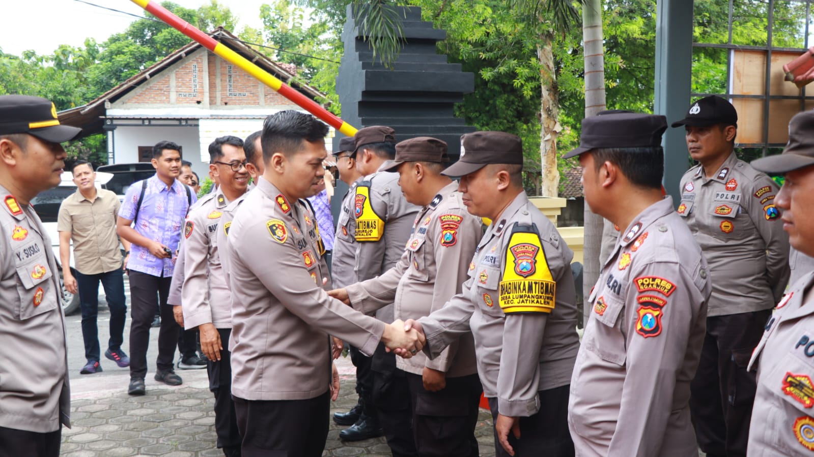 NGANJUK, SRTV.CO.ID – Kapolres Nganjuk AKBP Suria Miftah Irawan, melaksanakan tatap muka langsung dengan seluruh personel Polsek Jatikalen dan Polsek Patianrowo, didampingi Ketua Bhayangkari Cabang Nganjuk Ny. Icha Suria Miftah dan pejabat utama Polres Nganjuk. Kegiatan ini difokuskan untuk memperkuat pelayanan masyarakat dan memastikan transparansi dalam pengelolaan anggaran. “Layani masyarakat dengan empati dan ikhlas. Kehadiran polisi tidak hanya sebagai penegak hukum, tetapi harus benar-benar dirasakan manfaatnya oleh warga. Bhabinkamtibmas harus menjadi ujung tombak yang peka terhadap setiap dinamika dan kebutuhan wilayahnya,” tegas AKBP Suria dalam arahannya di Polsek Jatikalen baru baru ini. Kapolres juga mengingatkan pentingnya menjaga citra institusi dengan cara bijak menggunakan media sosial, menjaga kebersihan dan kerapian markas operasional, serta menggandeng Forkopimcam untuk menggiatkan kerja bakti bersama masyarakat di setiap wilayah. “Jangan lakukan hal-hal yang bisa merugikan diri sendiri, keluarga, maupun institusi. Perhatikan kerapian penampilan, bila baju dinas sudah tidak layak, segera usulkan penggantian. Yang paling penting, tidak boleh ada potongan anggaran apa pun. Setiap alokasi harus sampai benar-benar ke anggota yang berhak,” jelasnya tegas.Ny. Icha Suria Miftah sebagai Ketua Bhayangkari Cabang Nganjuk turut menyampaikan dukungan penuh kepada para anggota Polri dan keluarga mereka. “Bhayangkari adalah tulang punggung bagi anggota Polri di belakang layar. Selalu doakan keselamatan dan kelancaran tugas suami kita, serta jaga keharmonisan keluarga sebagai dasar kuat untuk menjalankan tugas dengan baik,” pesannya kepada para istri anggota Polri yang hadir. Saat melanjutkan tatap muka di Polsek Patianrowo, Kapolres kembali menegaskan komitmen pada pelayanan yang humanis dan profesionalitas kerja. Selain itu, ia juga mengajak para personel untuk menunjukkan kepedulian sosial kepada kelompok yang membutuhkan. “Bagi anggota yang memiliki rezeki lebih, jangan sungkan untuk menggelar santunan bagi anak yatim atau kelompok masyarakat kurang mampu di sekitar kita. Ini bukan hanya bentuk kepedulian, tetapi juga cara untuk mempererat hubungan dengan masyarakat,” tutur AKBP Suria.