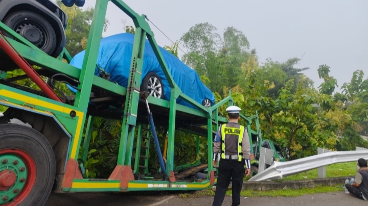 "Pada saat kejadian sekitar pukul 05.10 WIB, kendaraan yang melaju dari arah Timur ke Barat tiba-tiba oleng ke kiri dan menabrak pembatas jalan atau guardrail," ujar AKP Matheus Jaka, Kanit PJR Jatim 6 Polda Jatim.