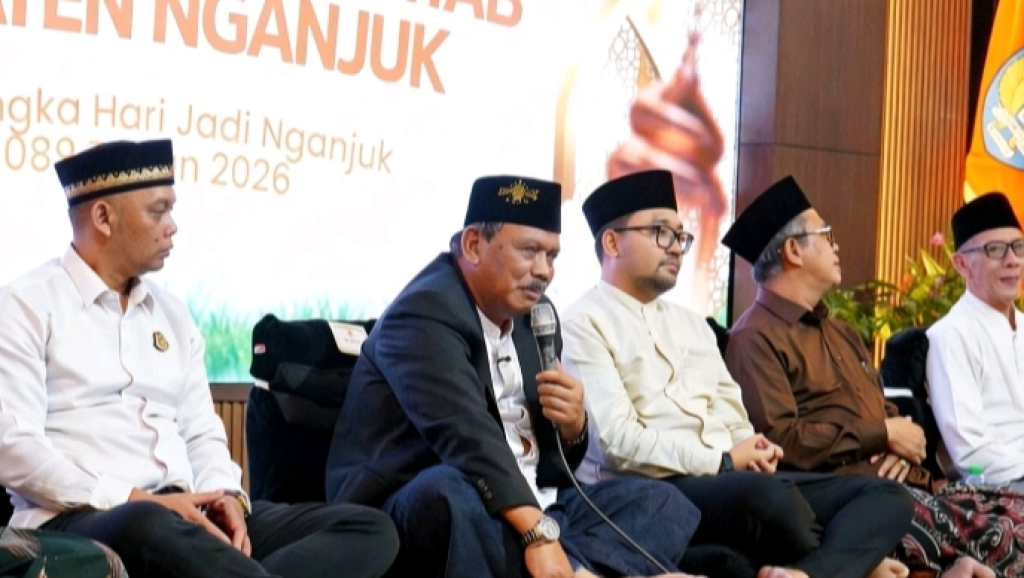 NGANJUK, SRTV.CO.ID – Dalam rangka memperingati Hari Jadi ke-1089 Kabupaten Nganjuk, Pemerintah Daerah menggelar kegiatan religius Sema’an Al-Qur’an Mantab dan Dzikrul Ghofilin. di Pendopo Kabupaten ini dihadiri ratusan jamaah serta jajaran Forkopimda dengan penuh kekhusyukan. Selasa (21/4/2026)