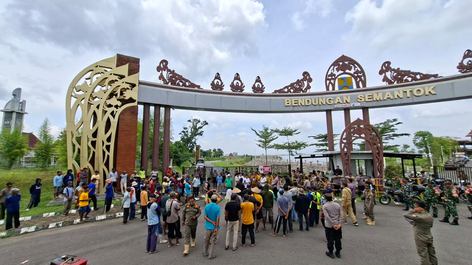 “Kami HIPPA tiga desa menuntut pemenuhan kebutuhan air untuk lahan pertanian, karena kami paling dekat dengan Bendungan Semantok tapi paling jauh dari layak pemenuhan air,” tulis spanduk besar yang digenggam massa, yang datang dengan membawa motor, mobil bak terbuka, dan sound system untuk menyuarakan aspirasi.